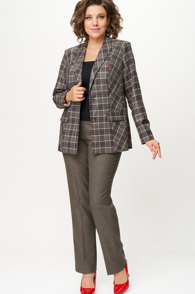 Классический костюм в клетку, идеальный баланс элегантности и стиля. Универсальный крой: Пиджак с пиджачным воротником и прямые брюки создают выигрышный силуэт для любой фигуры.