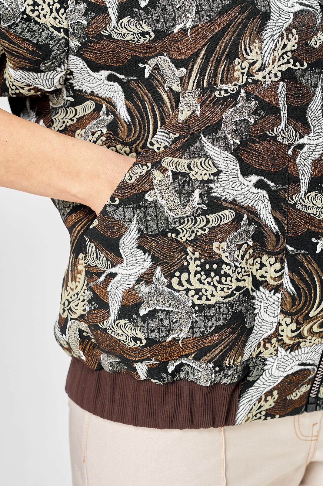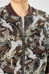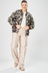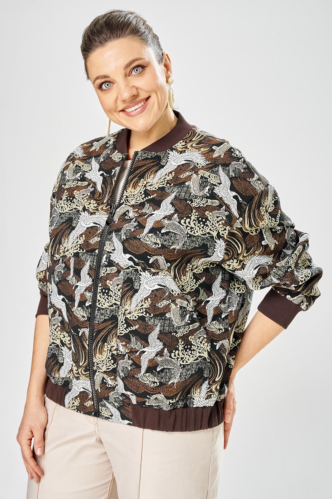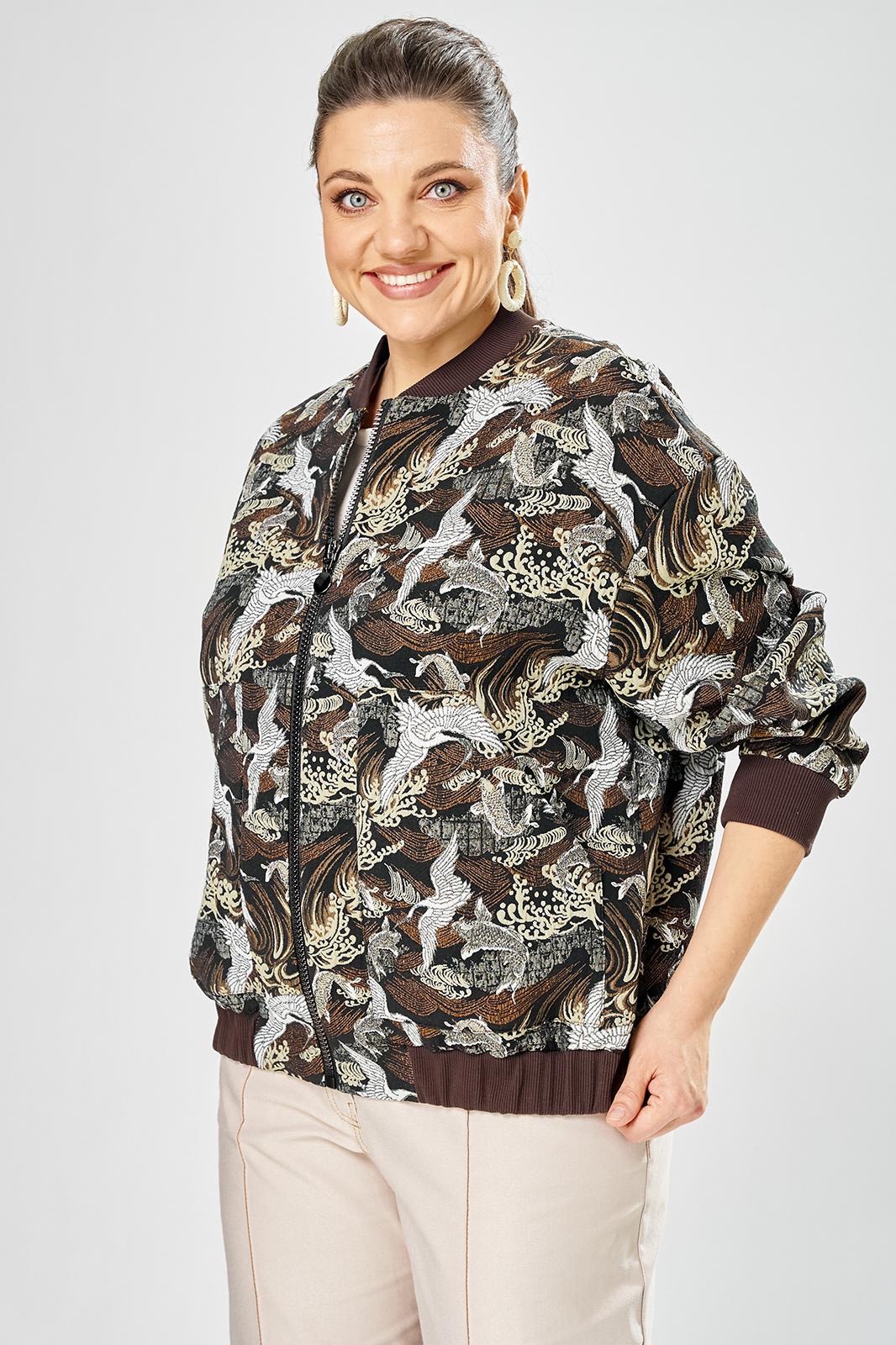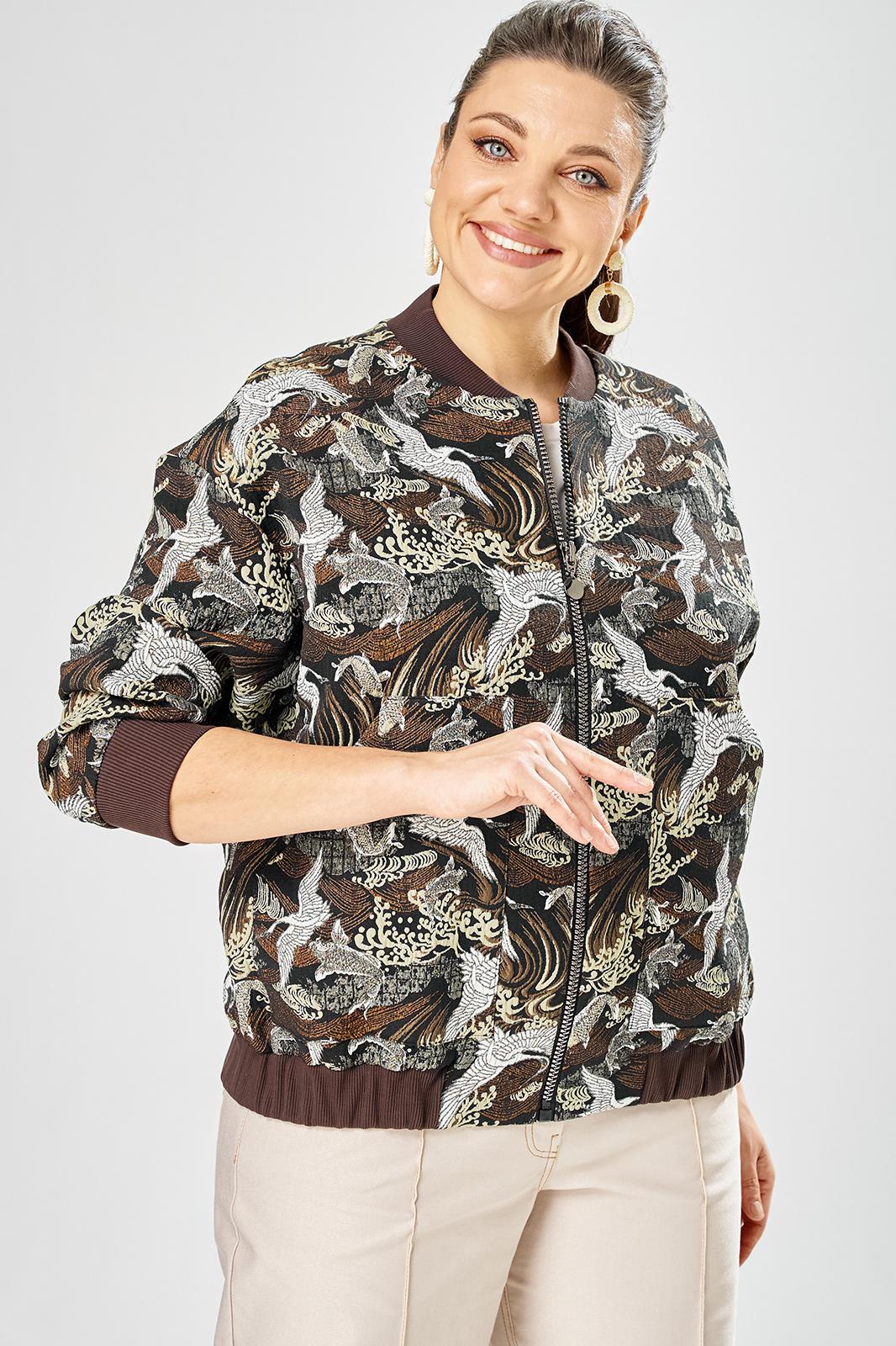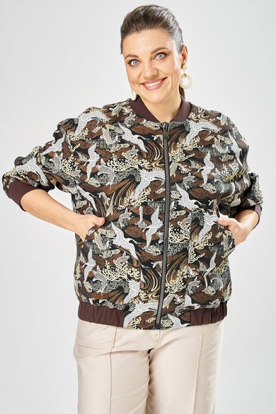 Стильный женский бомбер, свободного силуэта, выполнен из жаккардовой ткани с актуальным принтом.