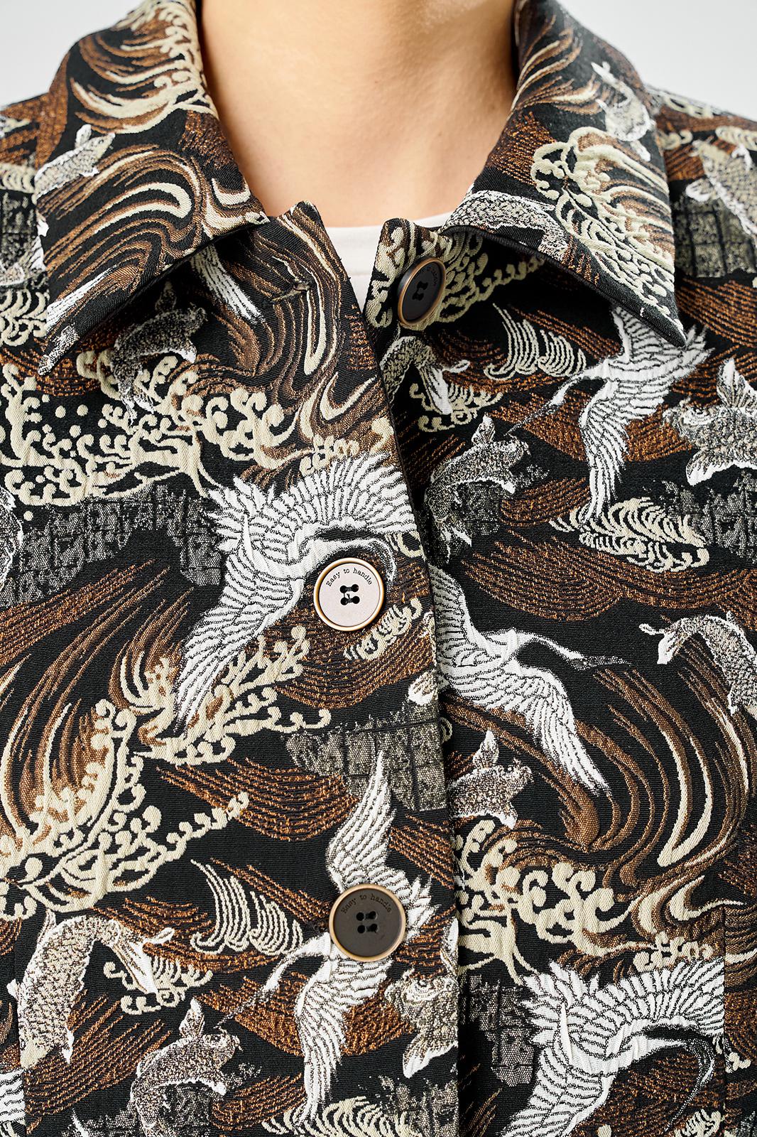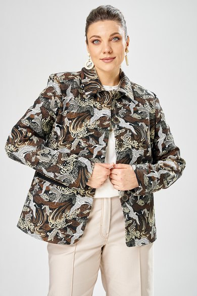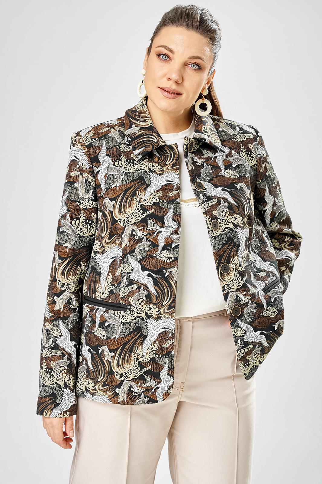 Стильный женский жакет из жаккардовой ткани с актуальным принтом.