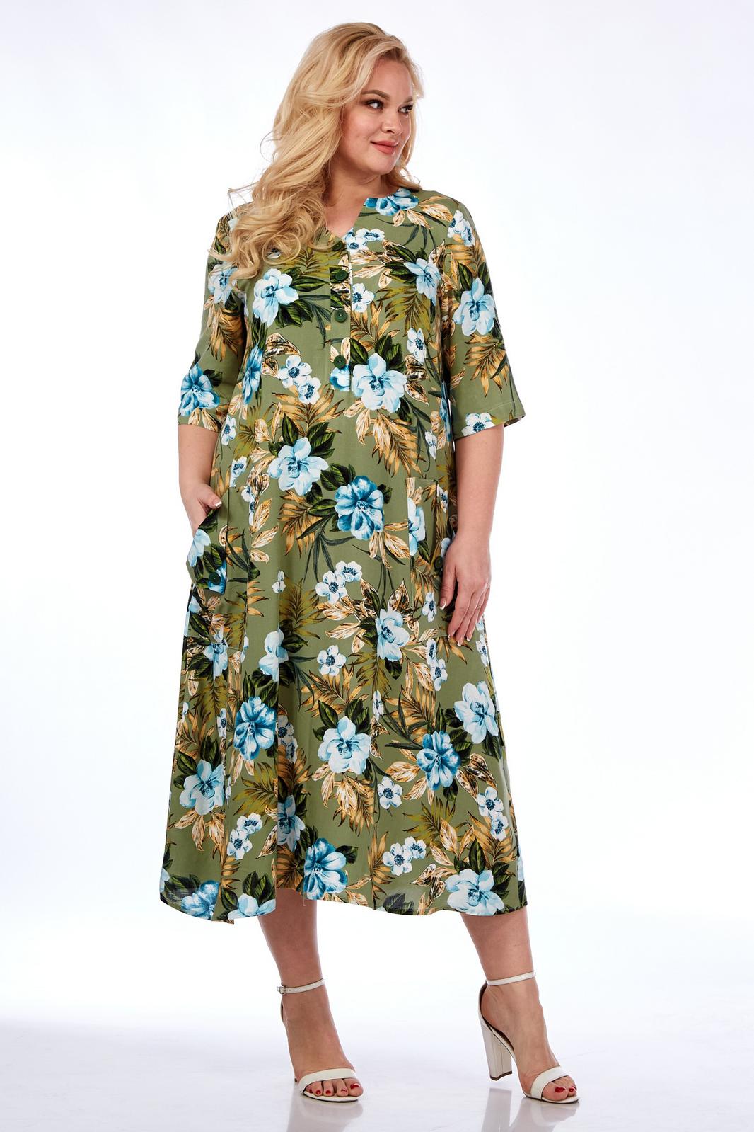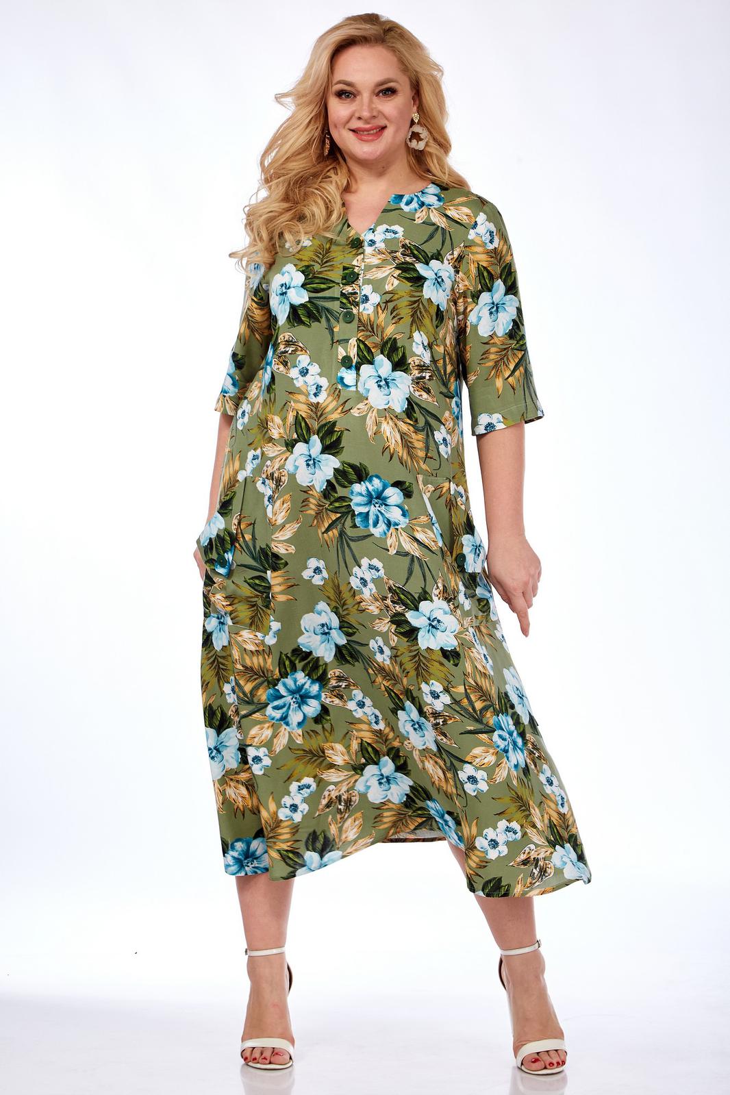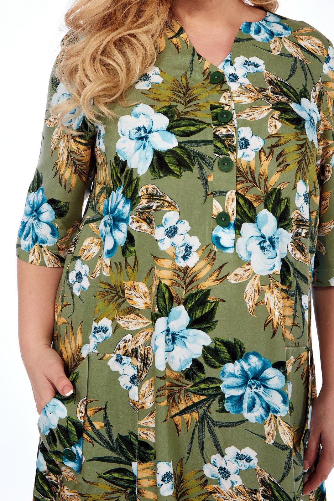 Платье выполнено из мягкой штапельной ткани устойчивой окраски. Рекомендуется вертикальная сушка.