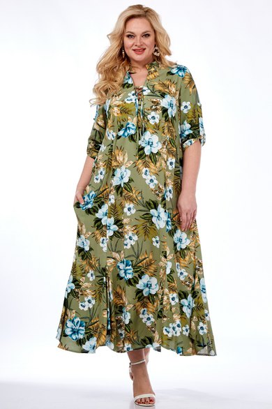 Платье выполнено из мягкой штапельной ткани устойчивой окраски. Рекомендуется вертикальная сушка.