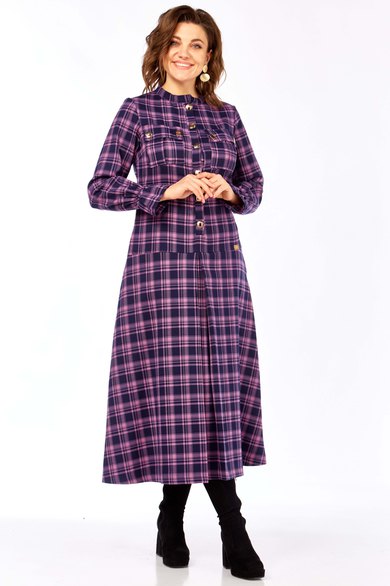 Образ излучает уверенность, яркость и индивидуальность. Это женщина, которая может быть одновременно строгой и очаровательной, энергичной и изысканной. Платье А- силуэта в клетку из качественной натуральной ткани (шерсть и хлопок) от Celentano.