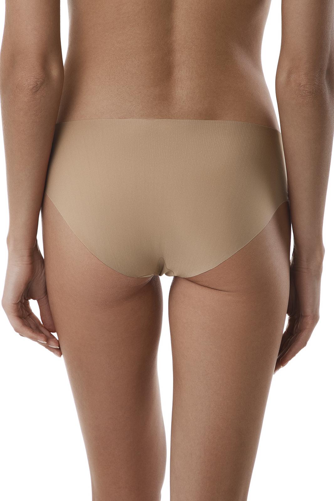 Трусы слип со средней линией талии. Нижние срезы обработаны плоским швом. Декоративная тесьма по верхнему срезу.