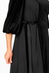 Линия плеча слегка расширена. Рельефы спереди и по спинке подчёркивают мягкие силуэтные линии. Немного завышена линия талии, которую подчеркивают декоративные ленты выполняющие роль пояса.