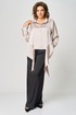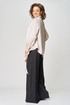 Брюки умеренные по бедру, расширенные к низу. Высокая посадка по талии визуально вытягивают фигуру. Для удобства пояс присобран на эластичную тесьму. По переду обработаны карманы - «хулиганы» с отрезным бочком. Брюки просты в уходе и удобны в