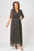 Линия талии на платье ампир – является главным ее украшением, она удлиняет силуэт и скрывает чрезмерную пышность. В нашем платье она оформлена эластичной тесьмой и декорирована пресобранной лентой спереди. V-образное декольте на «запах», это идеальный вариант под пышную грудь. Длинная ниспадающая складками юбка, выполненная из легкой ткани и перископические рукава: широкие по всей длине длинной до локтя, именно они придают образу еще большую романтичность, женственность. А еще их главная особенность – выравнивание пропорций в модели.