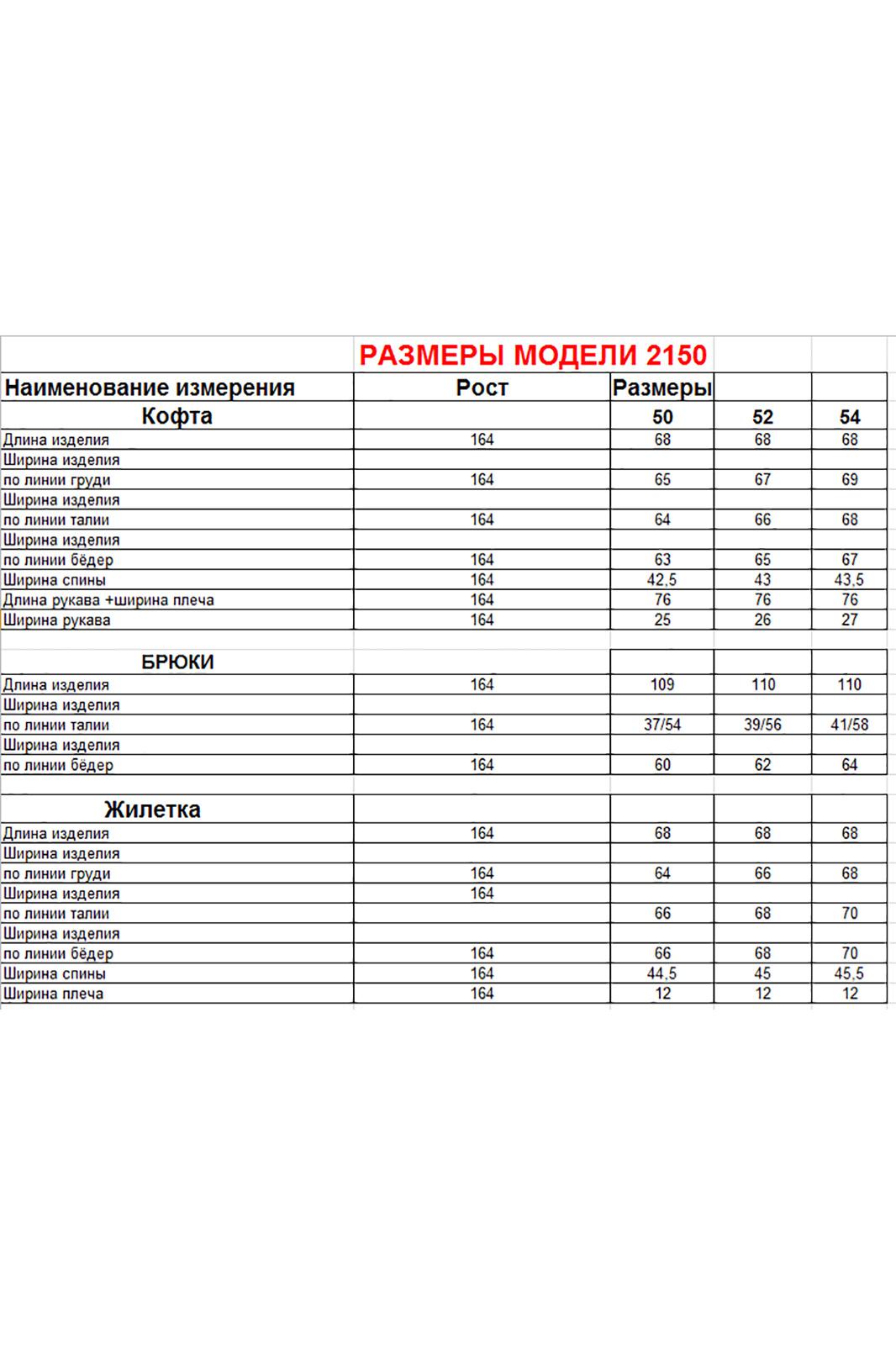 Длина кофты по спинке 68 см, длина рукава+ширина плеча 76 см. Длина жилетки 68 см. Длина брюк 109-110 см