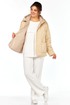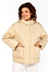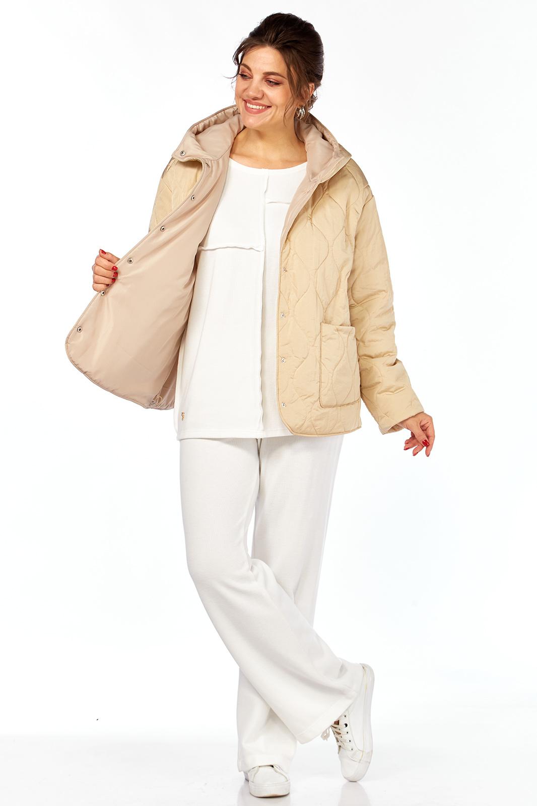 Куртка женская с центральной бортовой застежкой на кнопки. Спинка простая. Перед с боковыми накладными карманами. Рукав втачной одношовный с широкой подгибкой. Воротник-капюшон с центральной и боковыми частями и застежкой на 2 кнопки. Куртка на подкладке. Длина по спинке 70 см. Длина рукава 56 см.