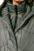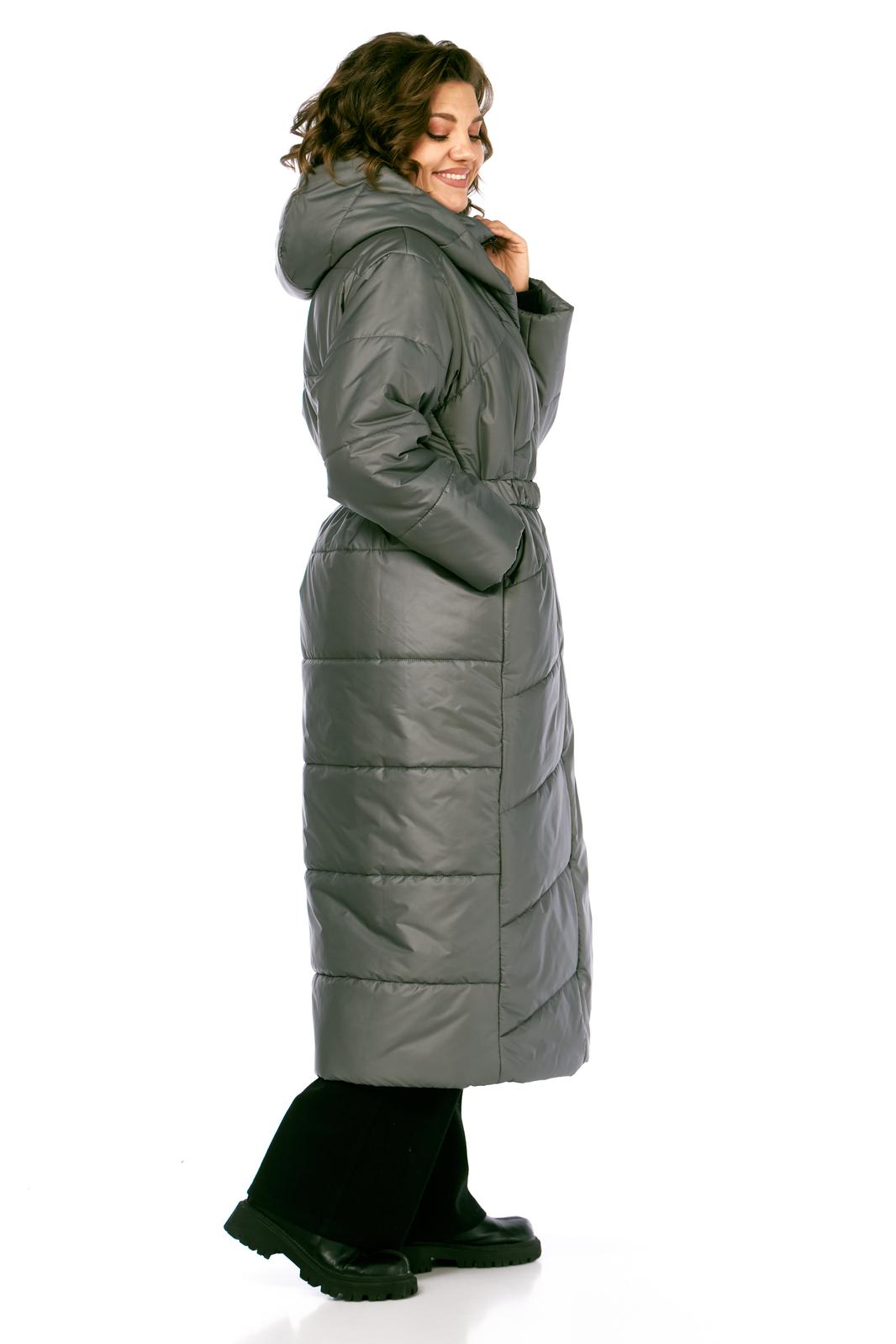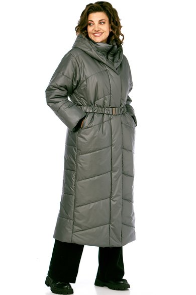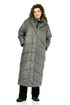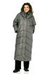 Пальто женское утепленное (длиной до щиколотки). Спинка с горизонтальной стежкой. Боковые швы смещены на перед. Полочки выстеганы по косой. Боковые карманы обработаны в швах. Рукав втачной, одношовный с трикотажными манжетами из-под подгибки. Паьлто с притачной манишкой, которая с воротником-стойкой и на молнии. Капюшон соединен с планкой, которая застегивается на кнопки сверху до низа изделия. Температурный режим до -10 градусов.