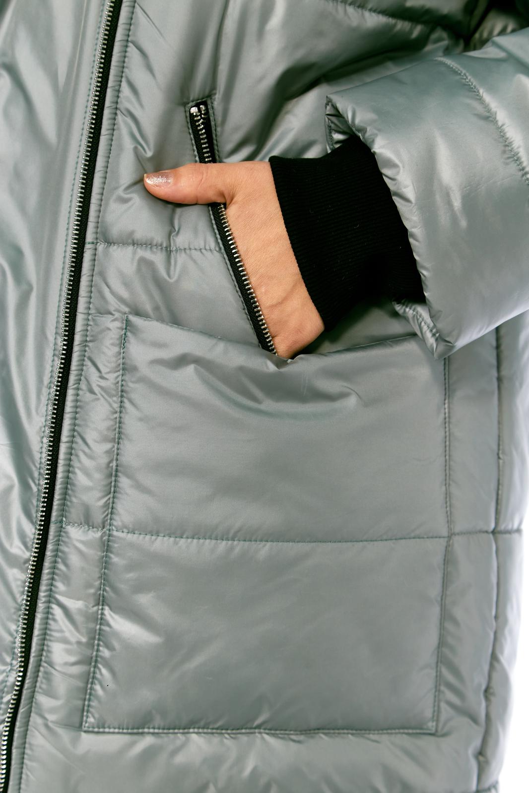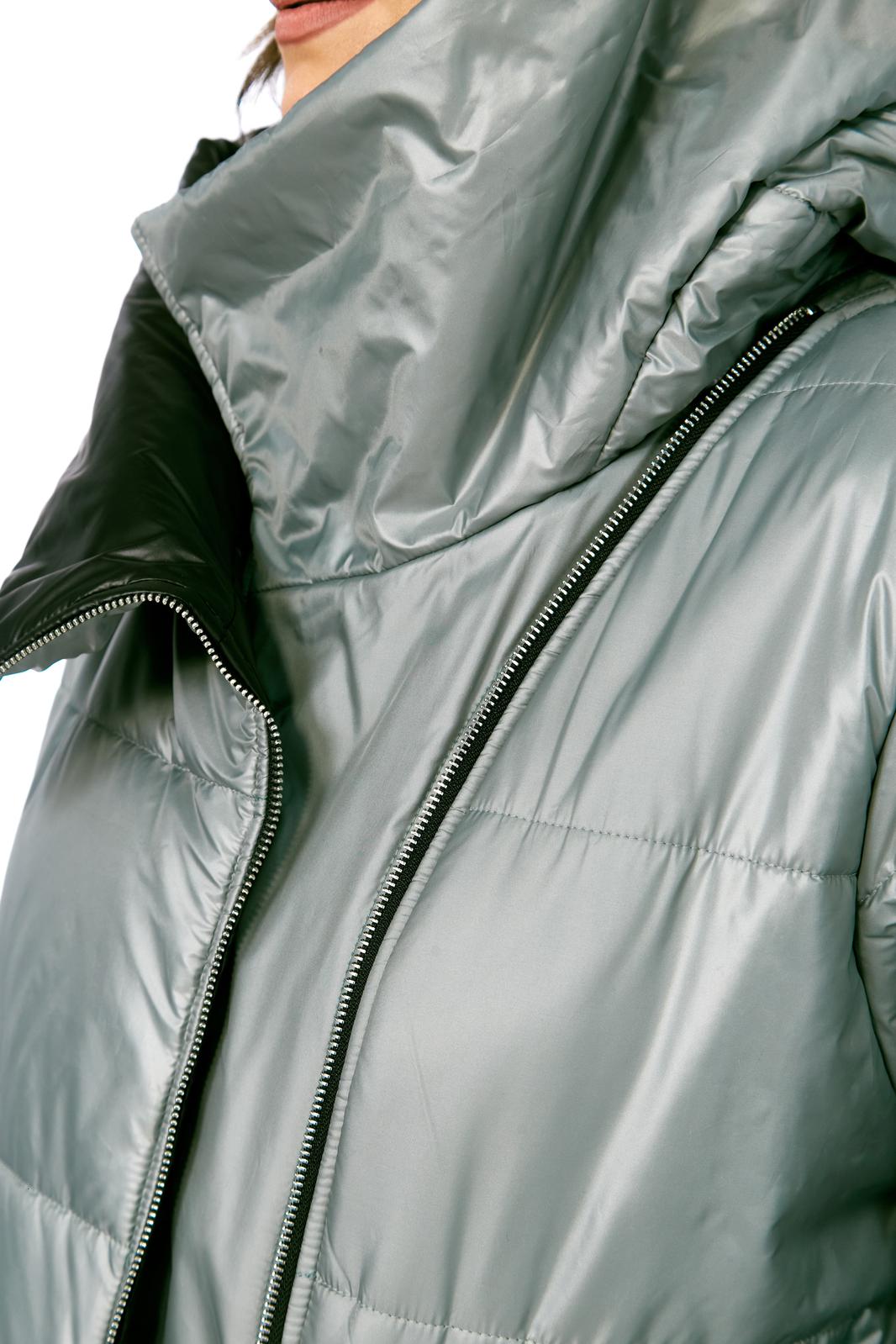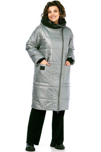 Пальто женское утепленное свободного кроя с ассиметричной застежкой на молнию. Перед с прорезными карманами с молнией и накладными карманами. Правый накладной карман с отделочной нашивкой. Рукав втачной одношовный с трикотажным манжетом выходящим из-под подгибки. Объмный капюшон выполнен из 2-ух видов ткани. Утеплитель Hoopon 200, температурный режим до -10 градусов.