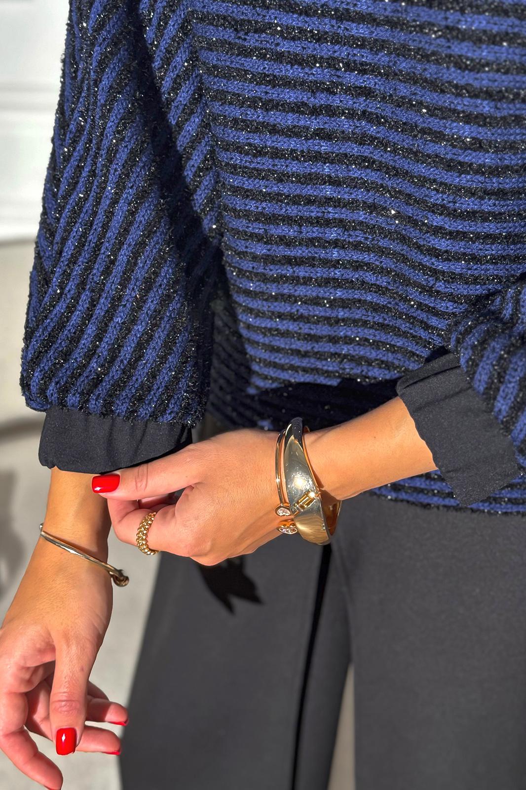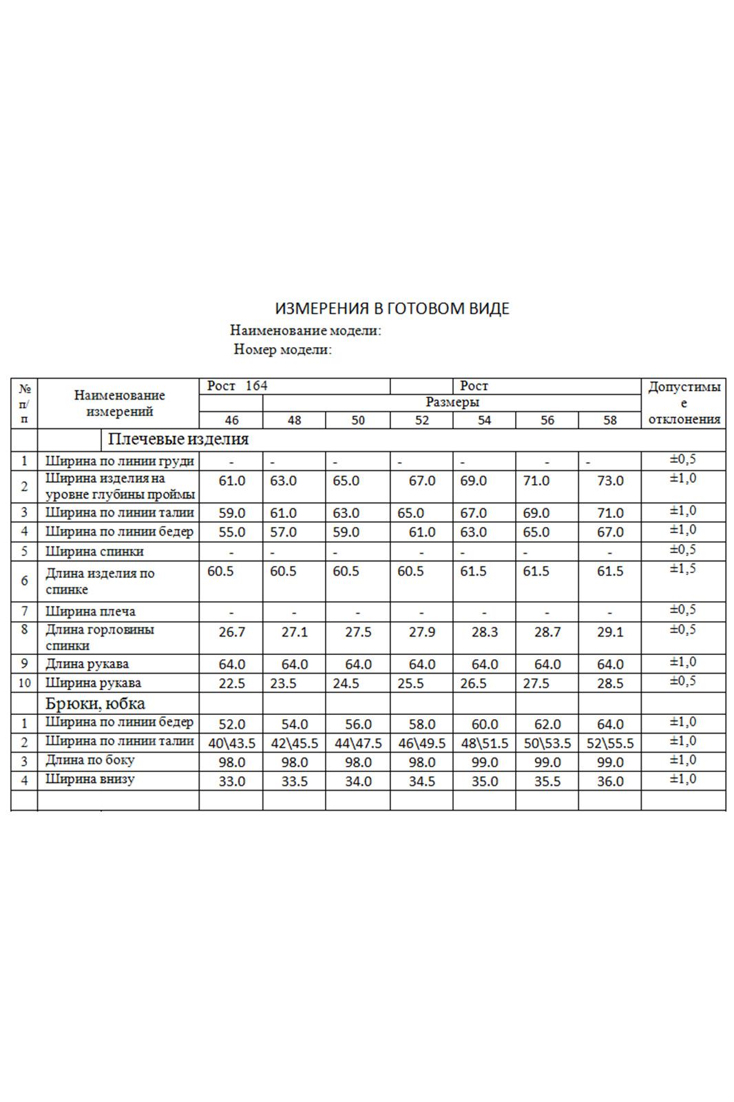 - Тип ткани: Джемпер: П/Э - 95%, Спандекс - 3%, Метал.нить - 2% Брюки: Вискоза – 55 %, П/Э - 41%, спандекс – 4%