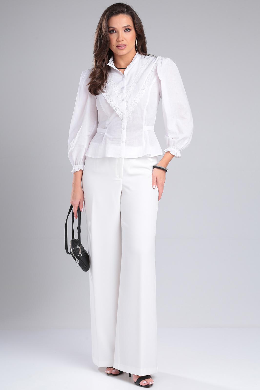 Изысканная блузка из легкой летней ткани с множеством декоративных элементов(стойка-воротник с кружевом, отлетная фигурная кокетка по полочке и спинке, втачная планка с декоративными пуговицами,рельефные швы). Рукав втачной, со сборкой по плечу, низ рукава присобран на эластичную ленту.