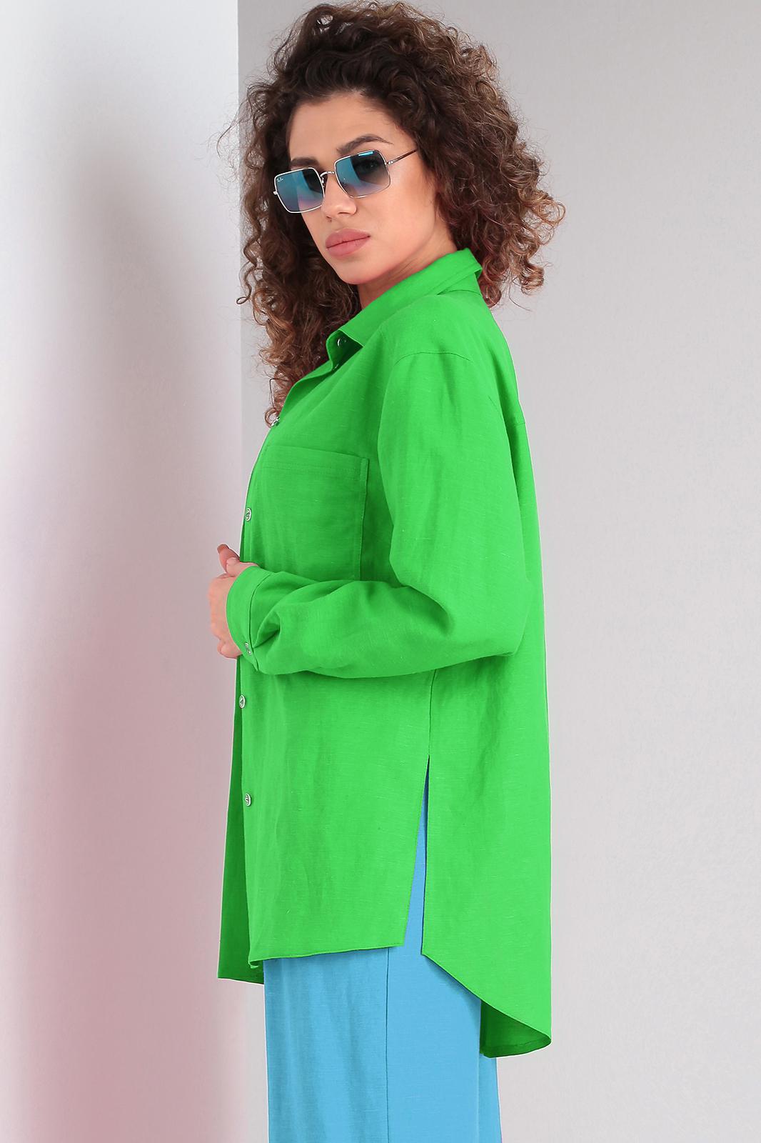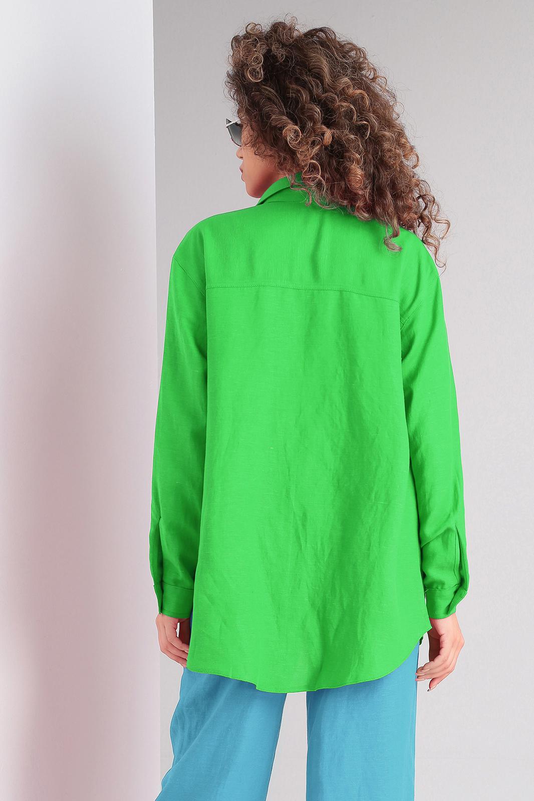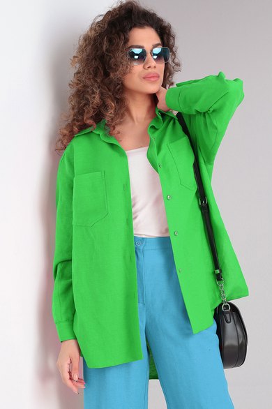 Блузон свободного силуэта с накладными карманами по полочке. Воротник рубашечного типа на стойке. Рукав втачной на спущенной пройме с застежкой на петли пуговицы. длина по спинке 78. длина рукава 56