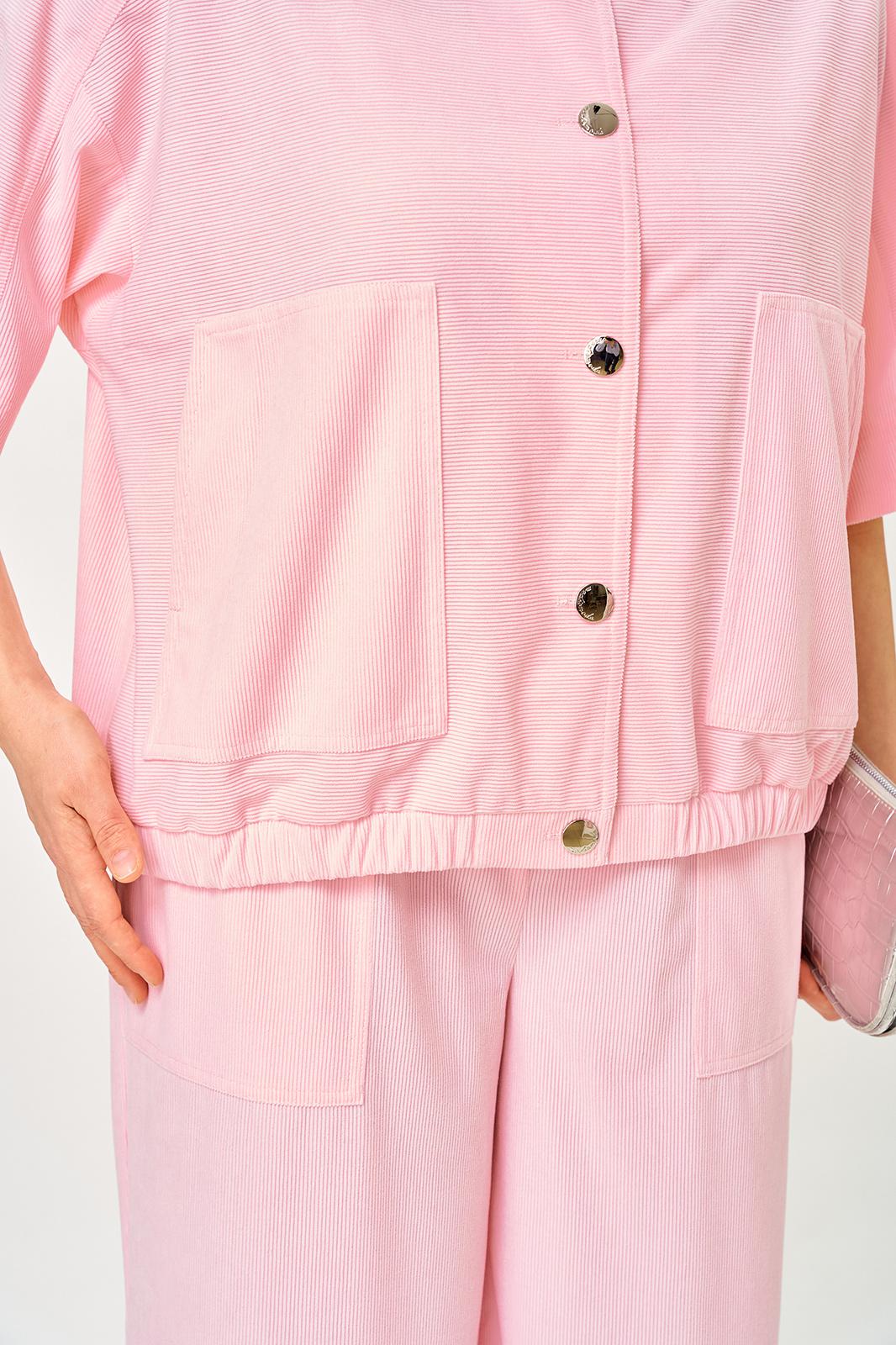 Летний брючный костюм из легкого вельвета , безупречный фасон в сочетание с нежным цветом сделает ваш образ идеально модным как в ежедневной носке так и для особого случая . Жакет свободного прямого , кроя с накладными карманами , на застежке петли пуговицы, по низу эластичная лента , рукав укороченный , резной с отстрочками . Брюки прямого силуэта, с накладными карманами, средней посадки , без застежки на поясе с резинкой.Возможна замена фурнитуры.