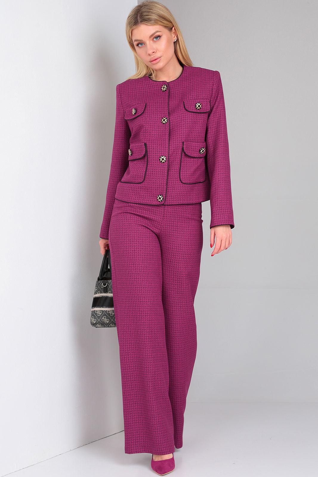 Стильный летний костюм в стиле Ш А Н Е Л Ь, выполнен из костюмной ткани Жаккард. Жакет с длинным рукавом и манжетой. По полочкам накладные карманы с клапанами, застежка на петли, пуговицы. Брюки на молнии , расширены от бедра.Жакет