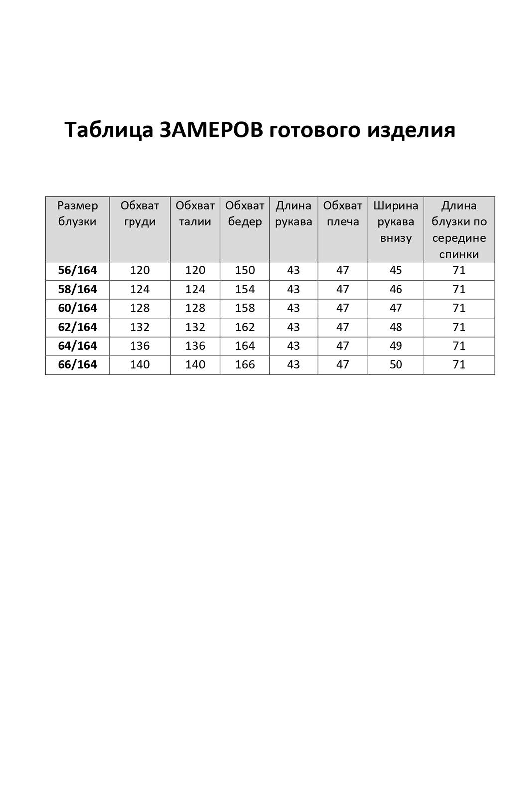 - Размерный ряд: 56-66