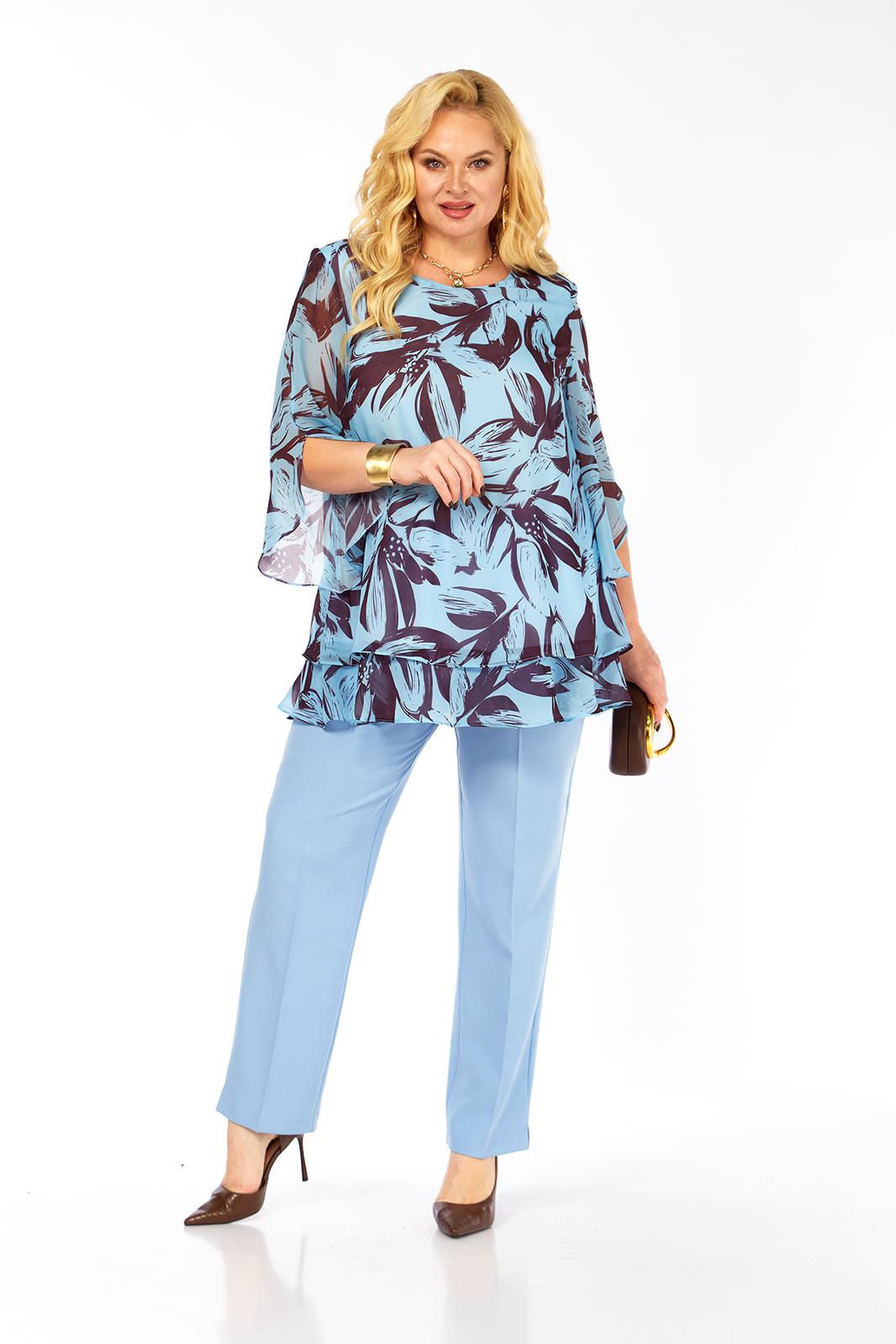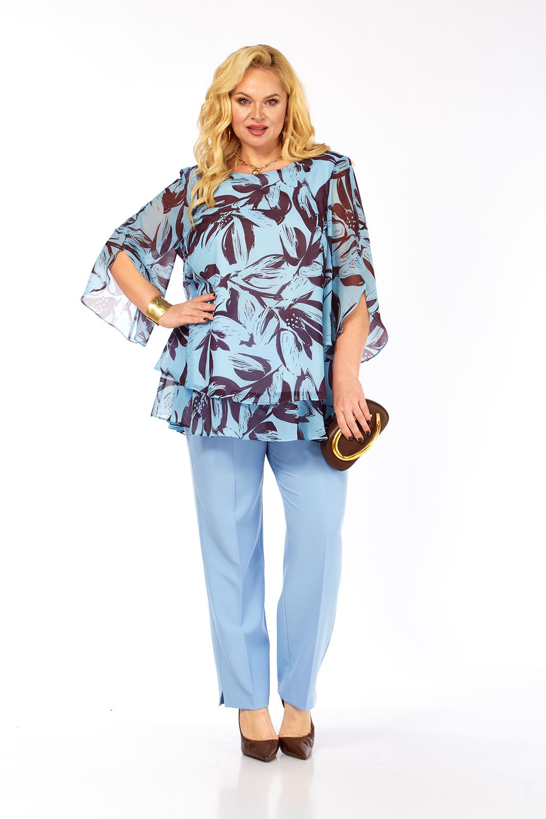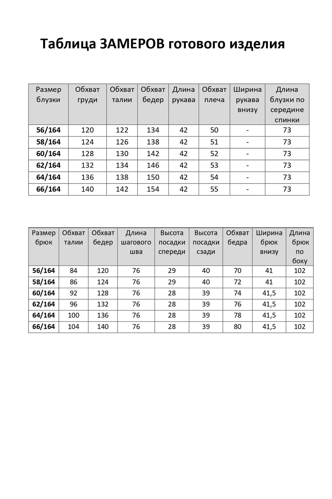 - Тип ткани: Блузка – полиэстер 100% (шифон). Брюки – полиэстер 50%, вискоза 50%