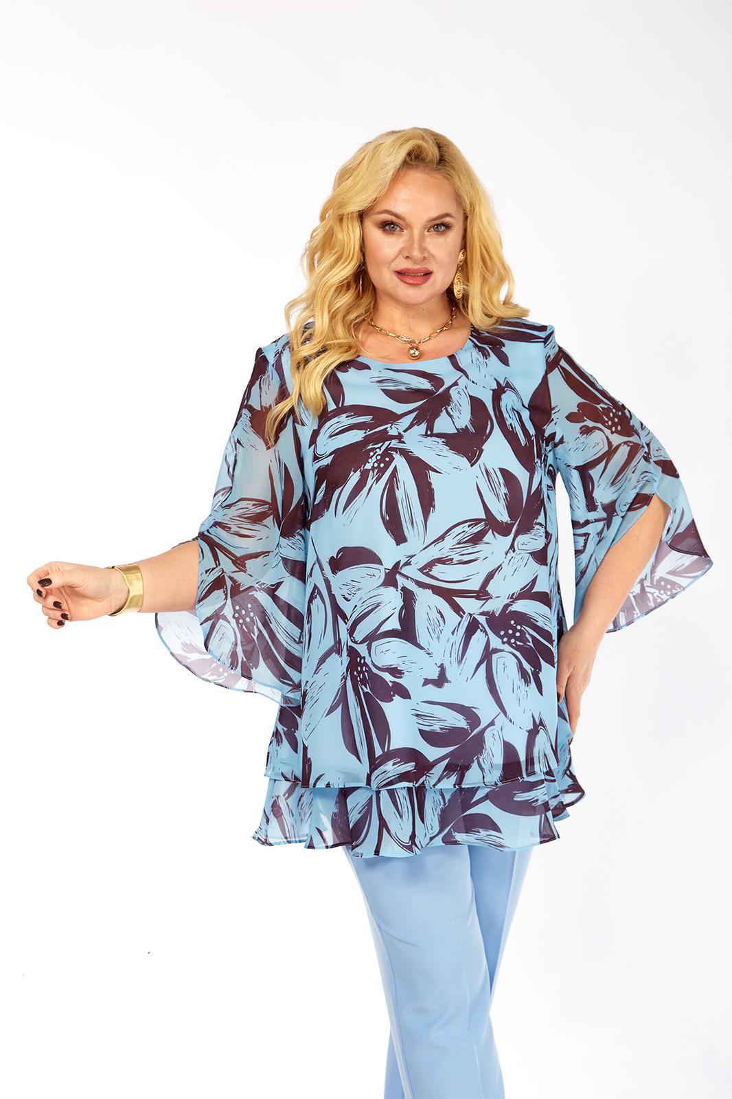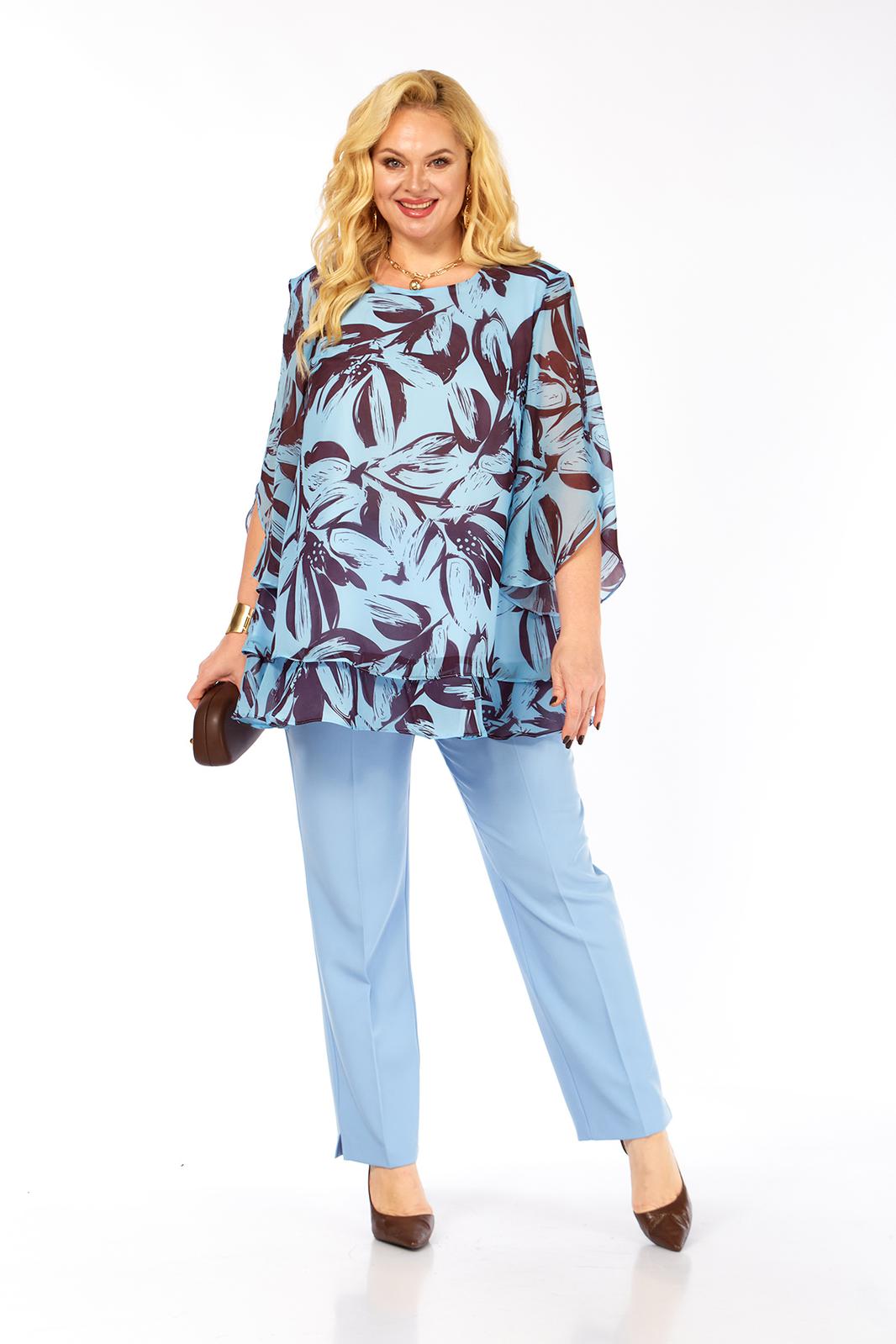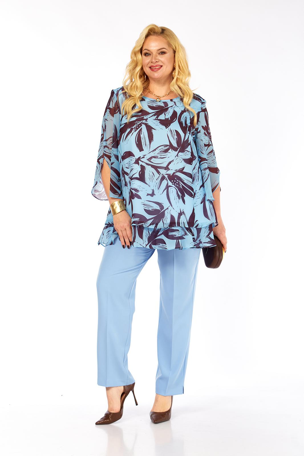 - Тип ткани: Блузка – полиэстер 100% (шифон). Брюки – полиэстер 50%, вискоза 50%