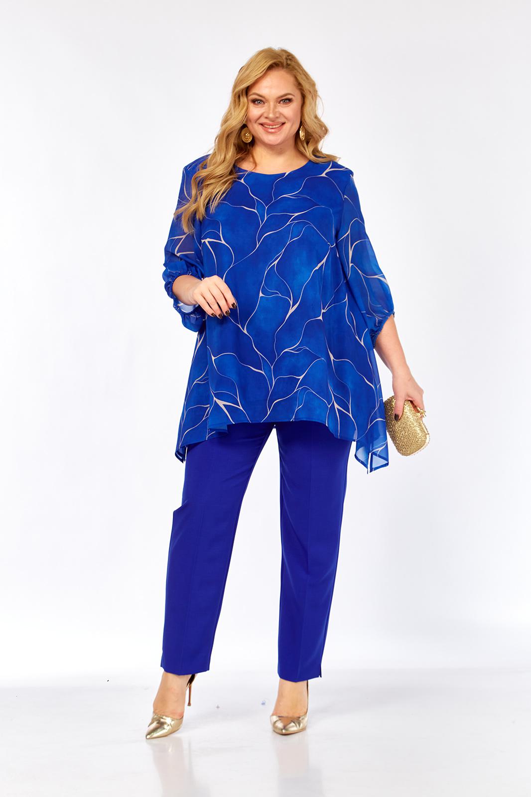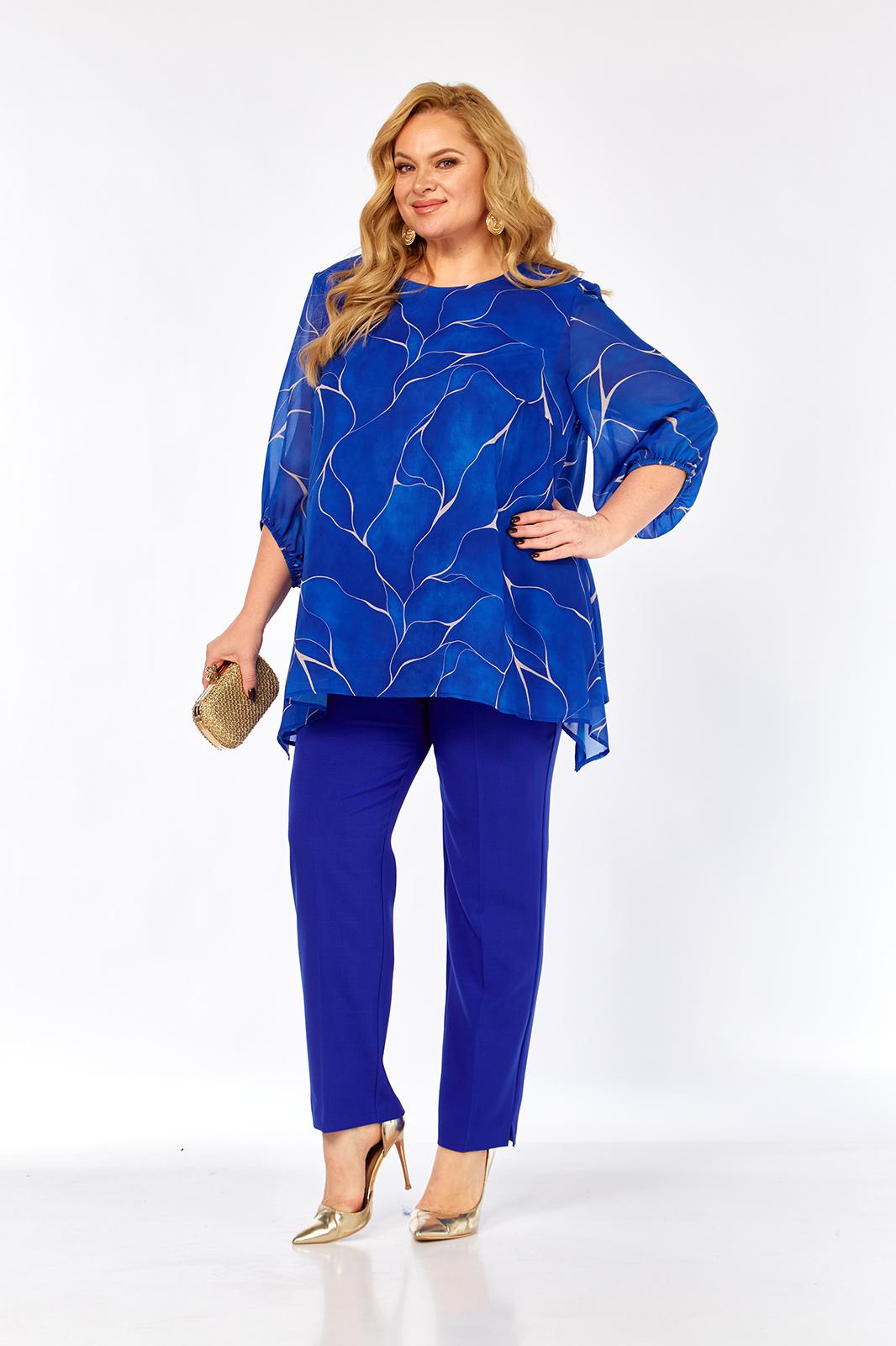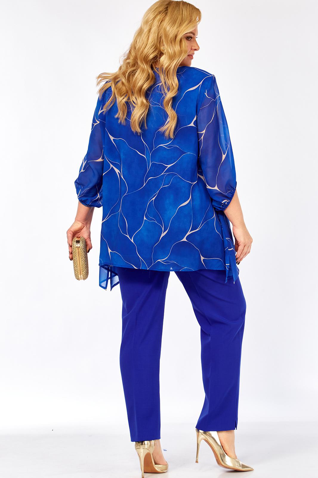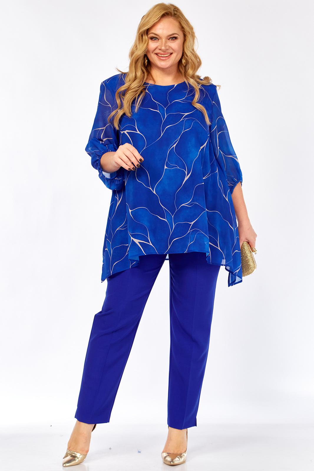 - Тип ткани: Блузка – полиэстер 100% (шифон). Брюки – полиэстер 50%, вискоза 50%