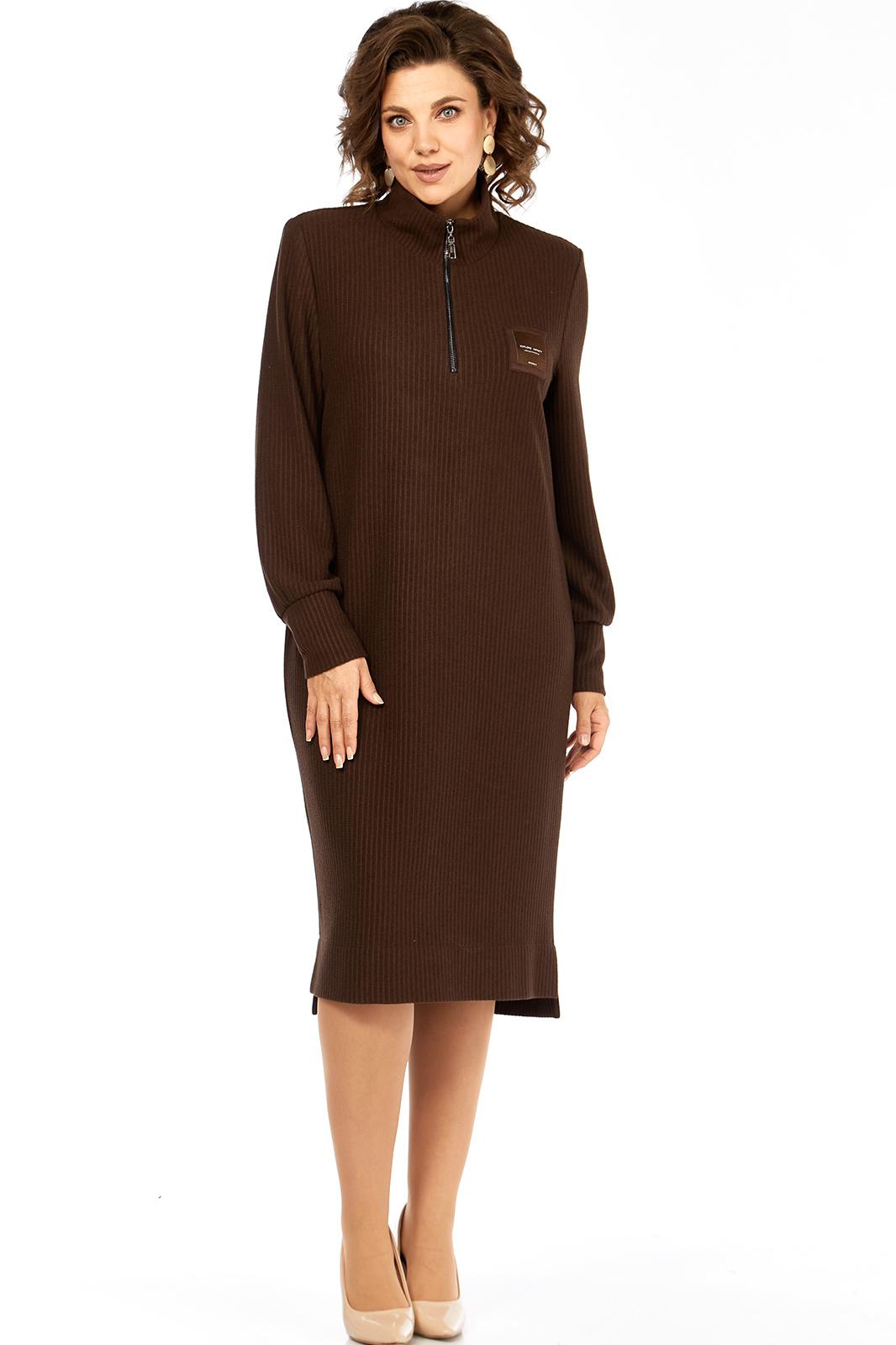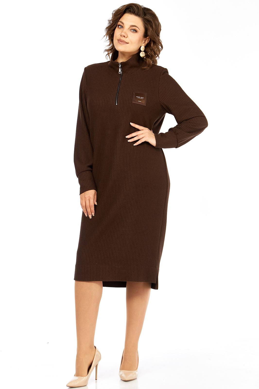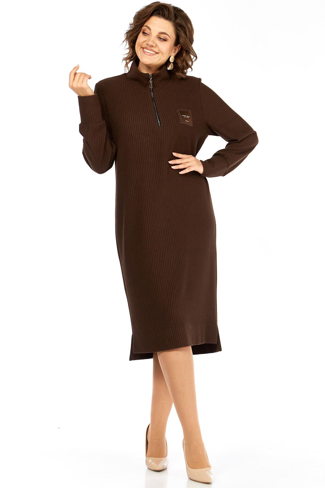 вид. Удобное платье полуприлегающего силуэта из трикотажного