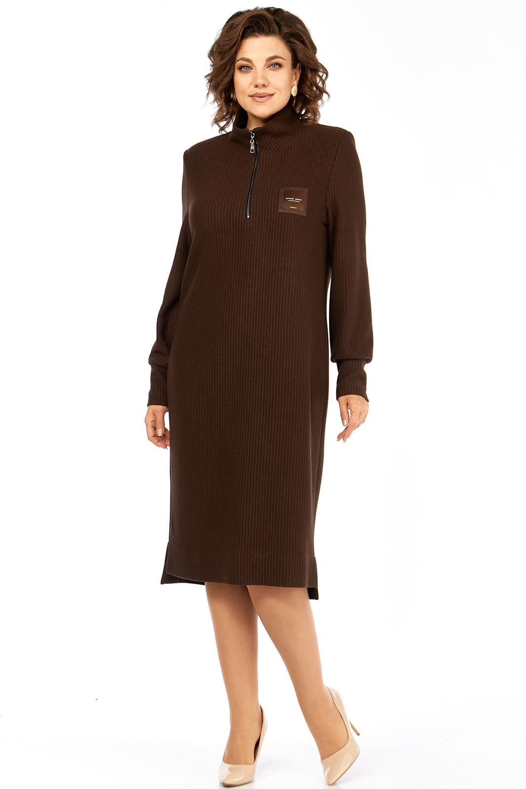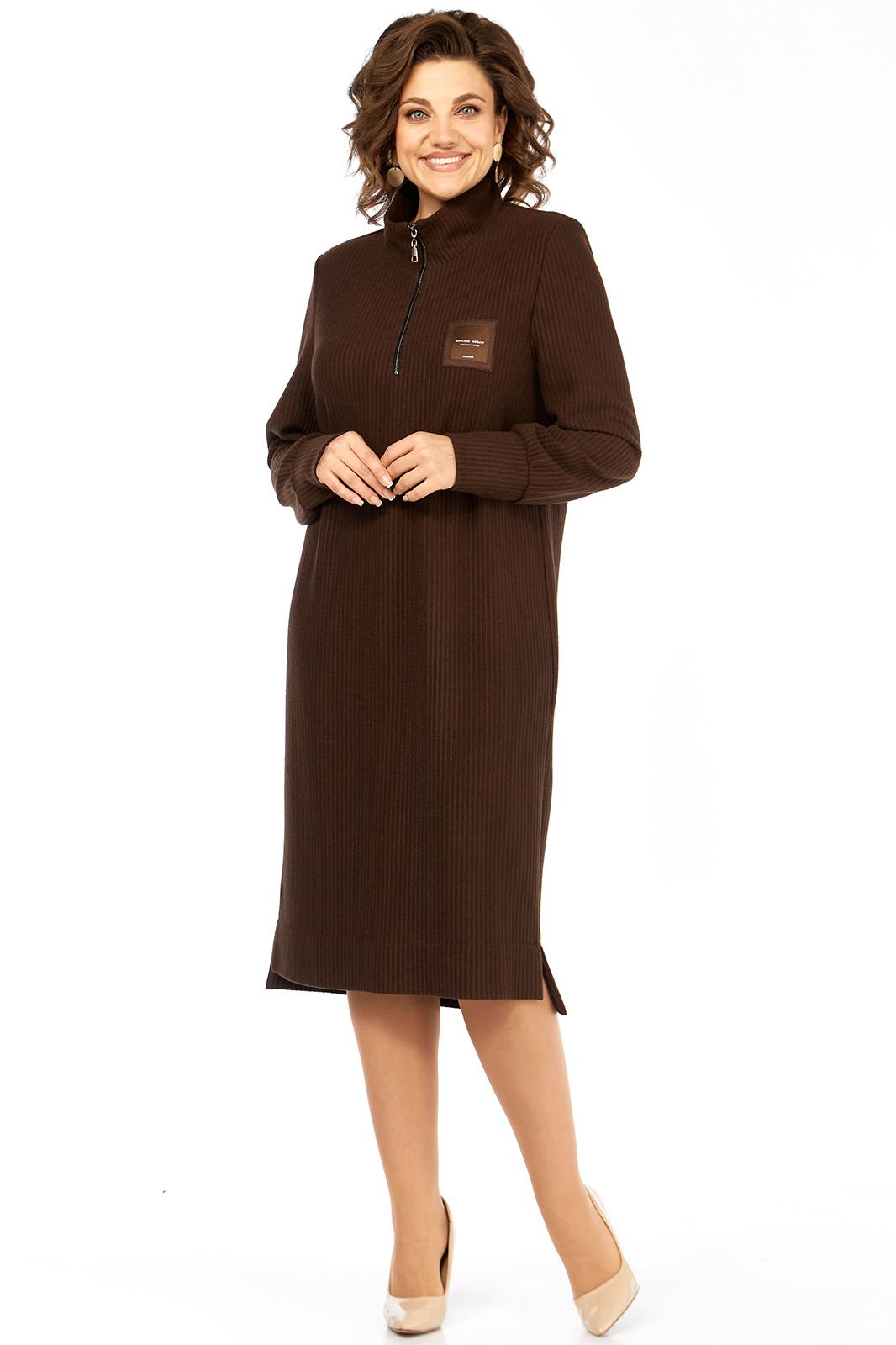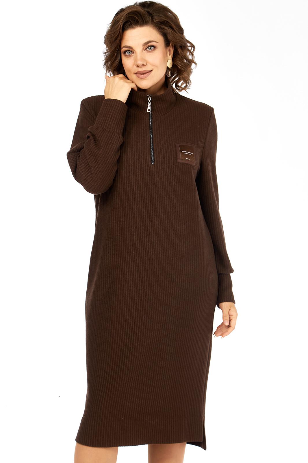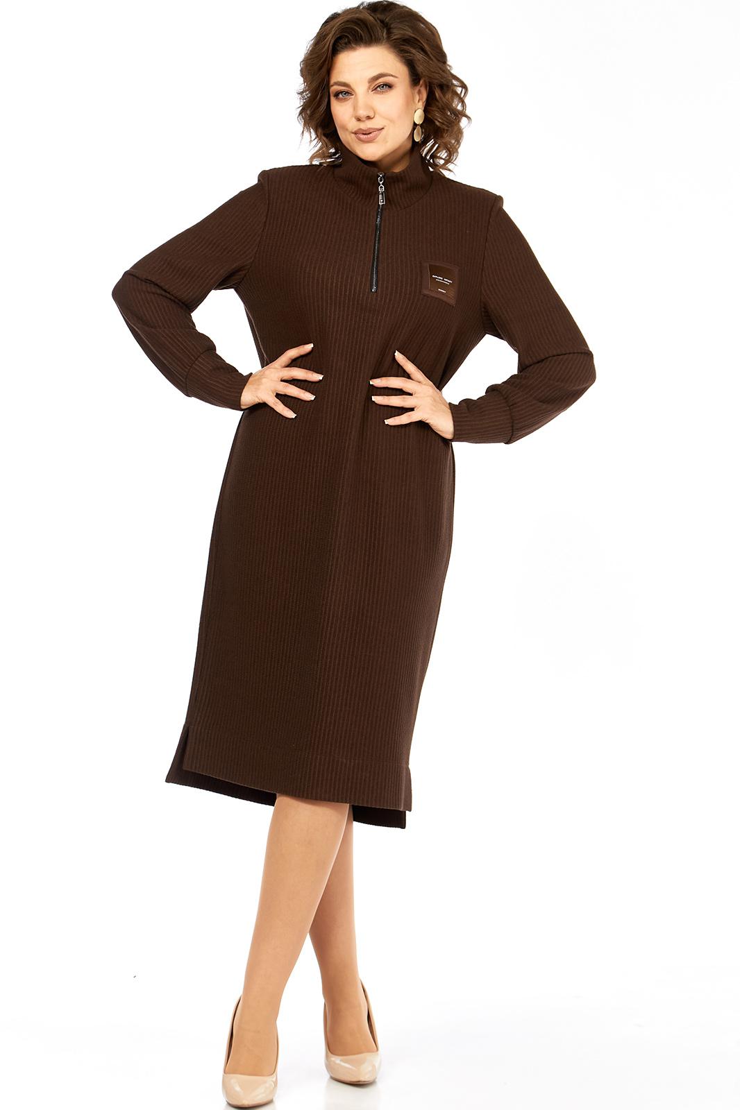вид. Удобное платье полуприлегающего силуэта из трикотажного