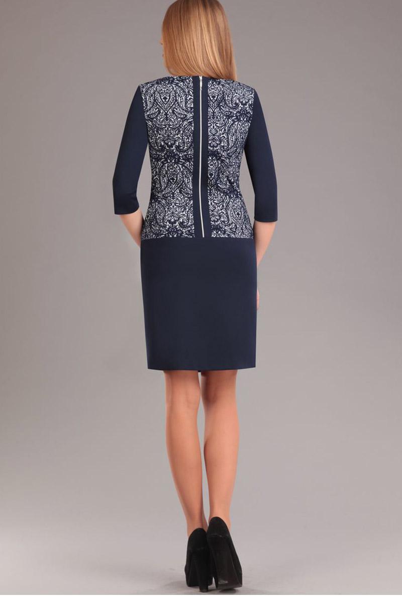 Платье выполнено из двух видов трикотажного полотна. Платье свободного силуэта, с листочками по полочке, застежка на декоративную молнию в среднем шве спинки. Длина платья: р.42-46 - 90см, р.48-52 - 94см. Длина рукава 3/4 - 40см.