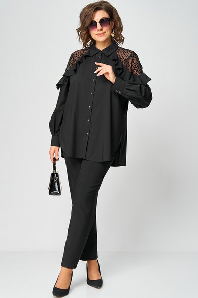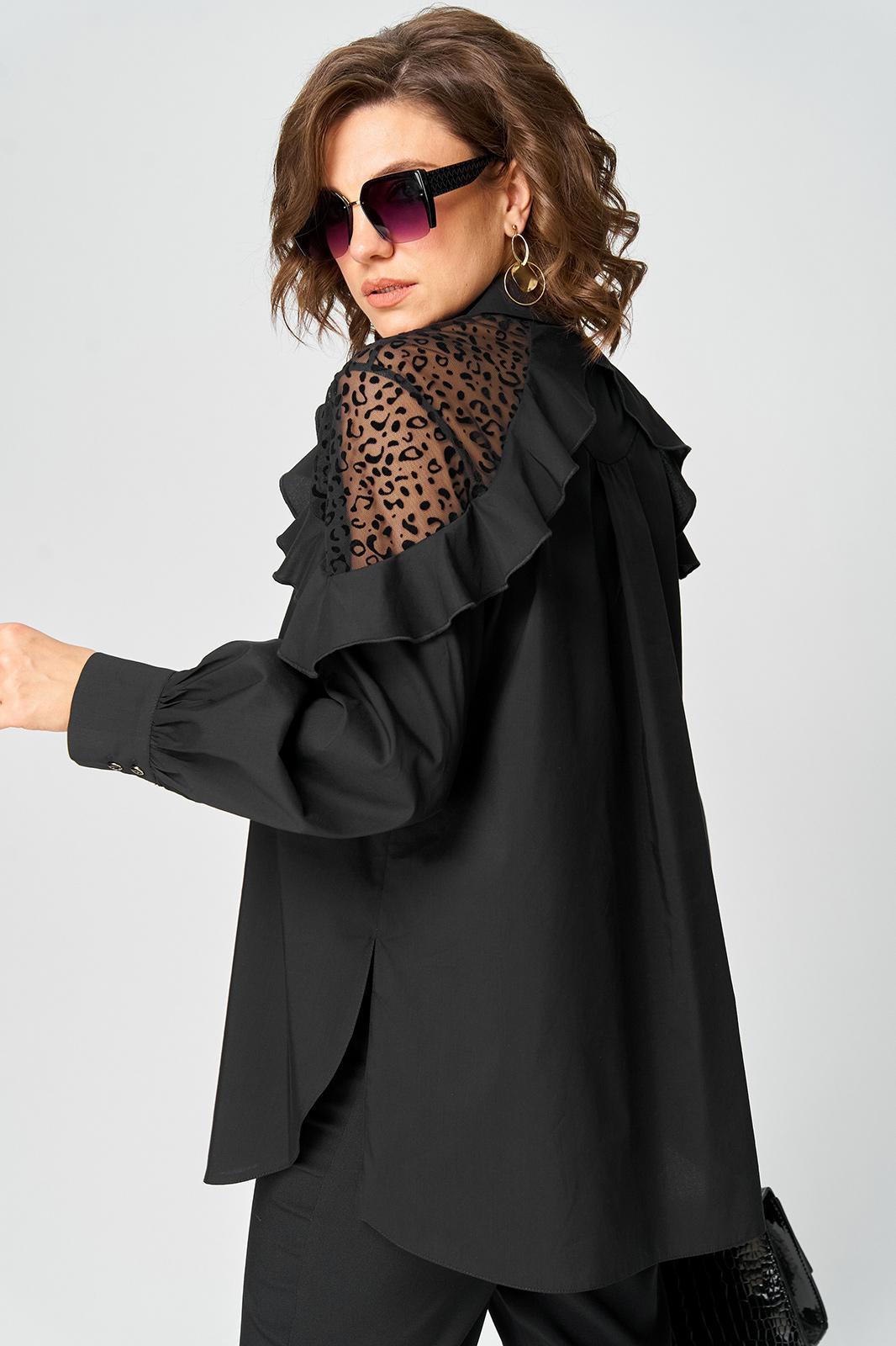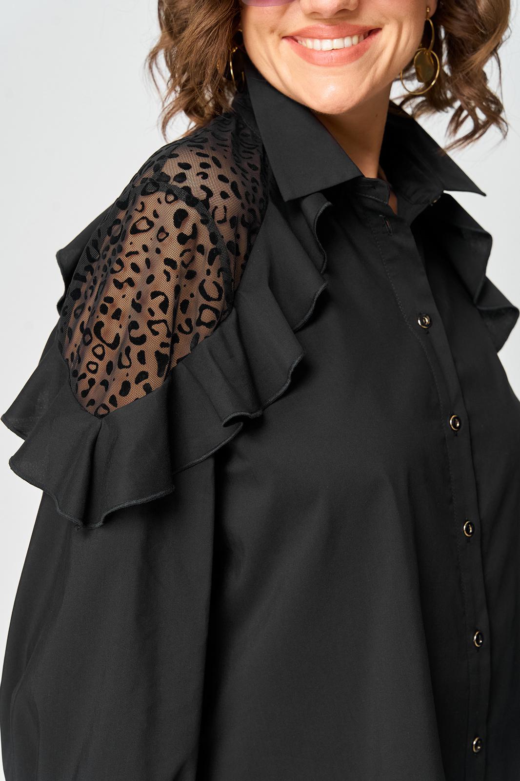 Блузка женская шикарная красивая нарядно-повседневная свободного силуэта выполнена их хлопка в сочетании с элегантным кружевом. Вырез горловины воротник на стойке рубашечного типа, рукав втачной с декоративным подрезом из кружева по низу на притачной манжете. Застежка до верху на обметанные петли и пуговицы. Низ блузы фигурный, в боковых швах обработан разрезы.