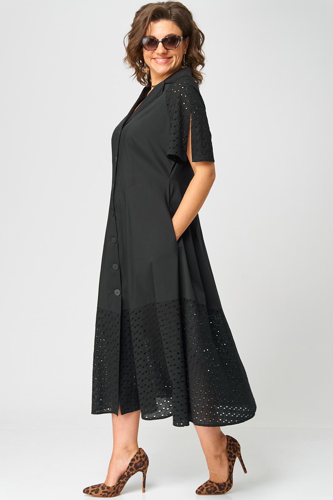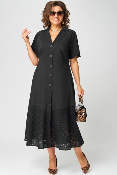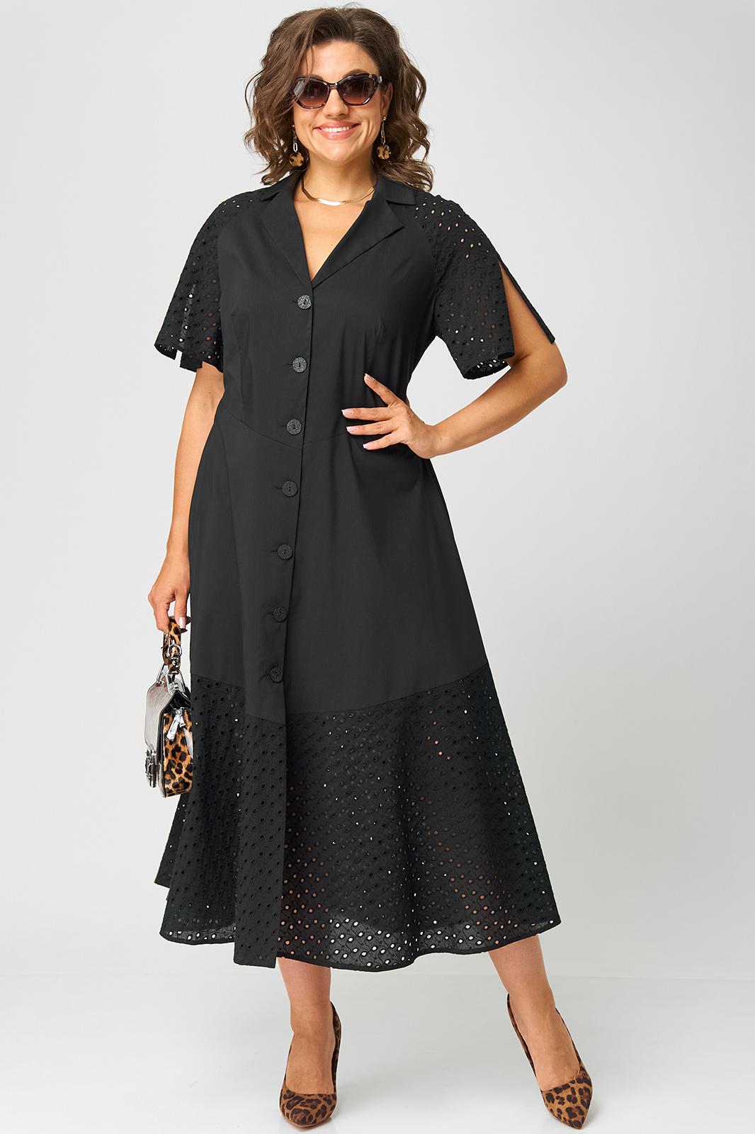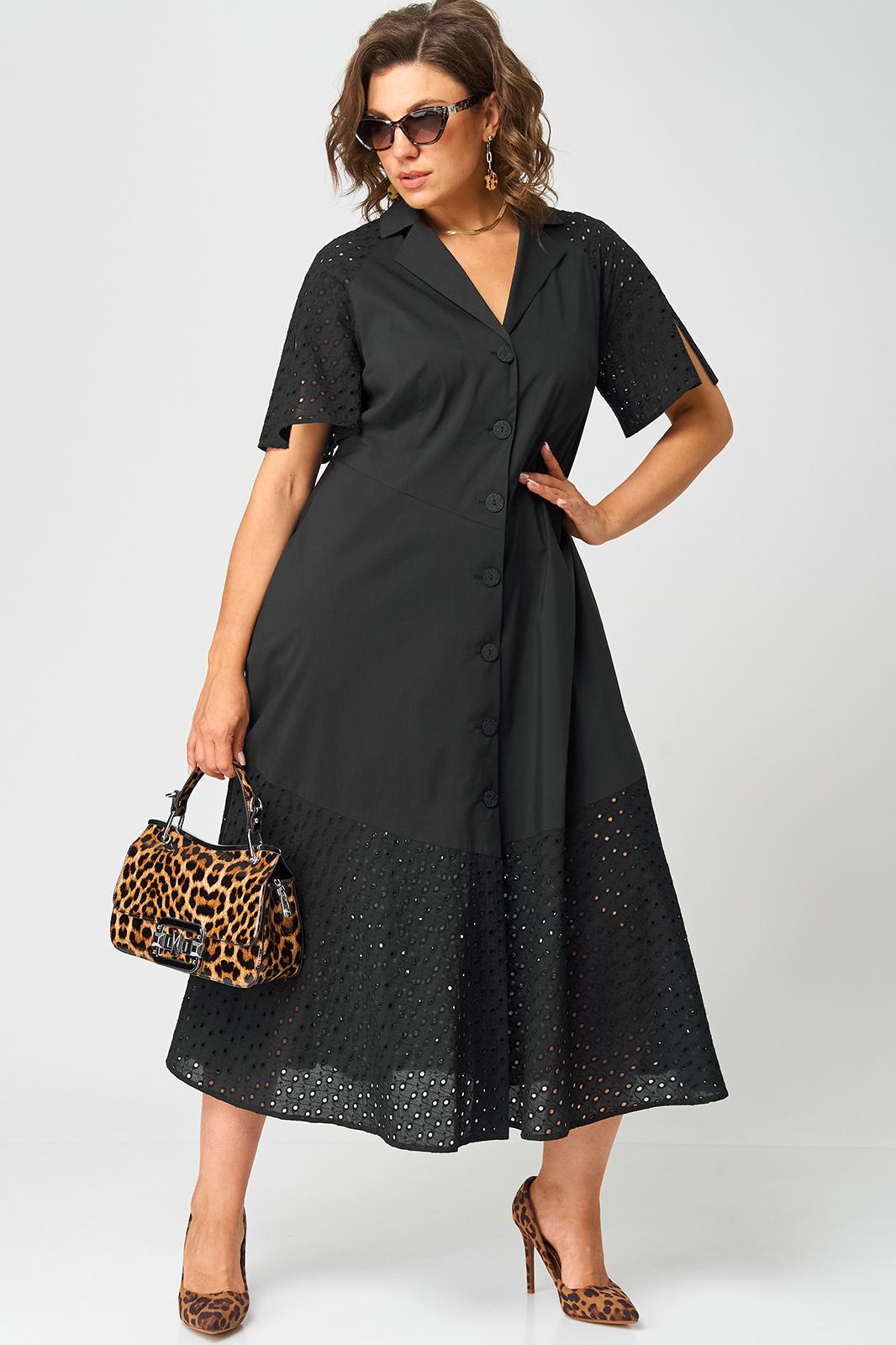 Платье женское стильное нарядное повседневное выполнено из хорошего красивого хлопка в сочетании с шитьем. Вырез горловины отложной воротник, застежка доверху на обметанные петли и пуговицы. Рукав реглан из отделочной ткани (шитье), по центру рукава обработан разрез. Платье отрезное по талии, подрез фигурный по полочке и спинке, придает модели элегантный приталенный вид. Волан по низу платья из отделоной ткани (шитье). Декором служат отделочные пуговицы.