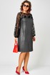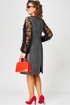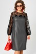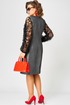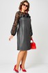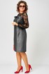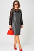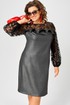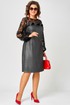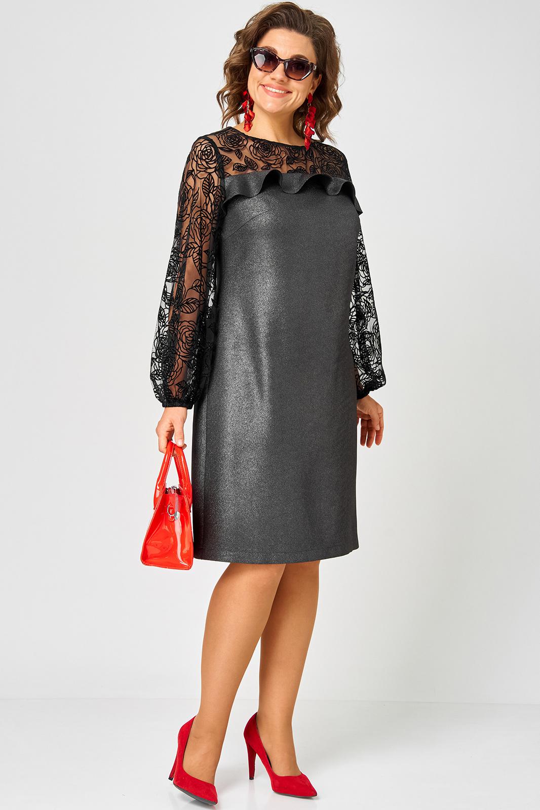 Платье женское нарядное полуприлегающего силуэта выполнено из плательной ткани пропитанной блестками (не сыпется) в сочетании с кружевом. Вырез горловины круглый обрботан косой бейкой, рукав втачной из сетки по низу собран на резинку. По полочке кокетка из сетки и отделоный элемент в виде волана. По полочке нагрудные вытачки. Спинка с центральным швом, вытачками и небольшим разрезом. Застежка - потайная тесьма молния. Декором платья служит дизайн кружева и волан по передней полочке.