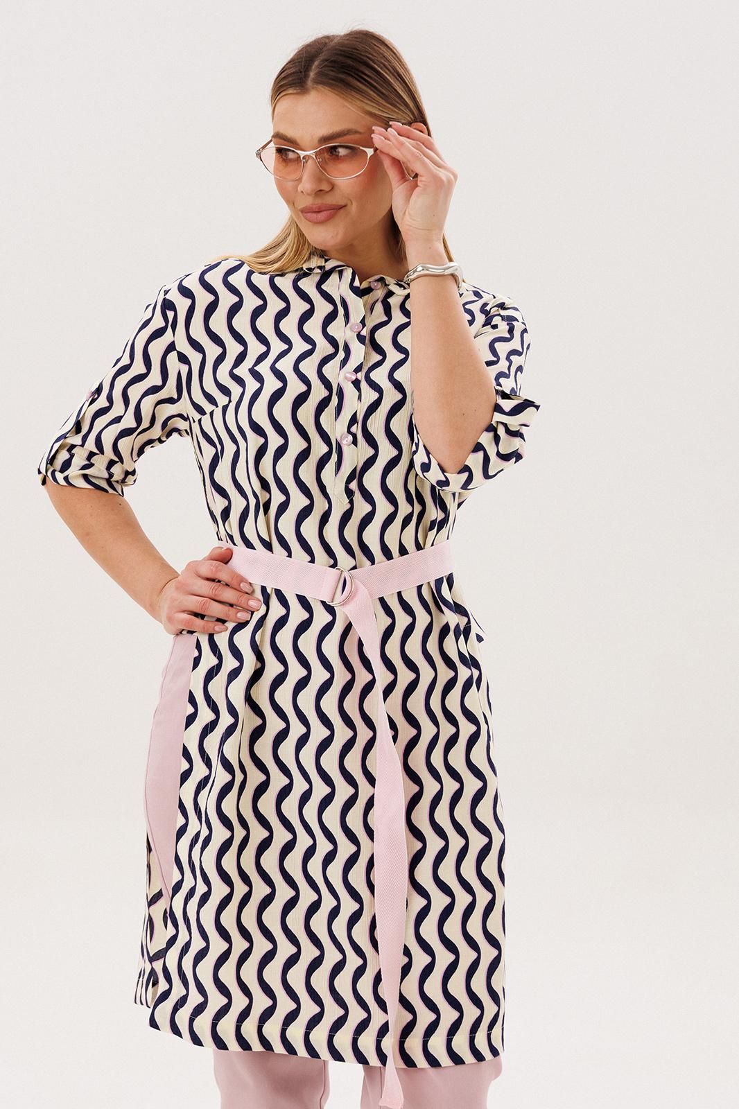 Туника выполнена из вискозного материала что делает её воздухопроницаемой, гигроскопичной.