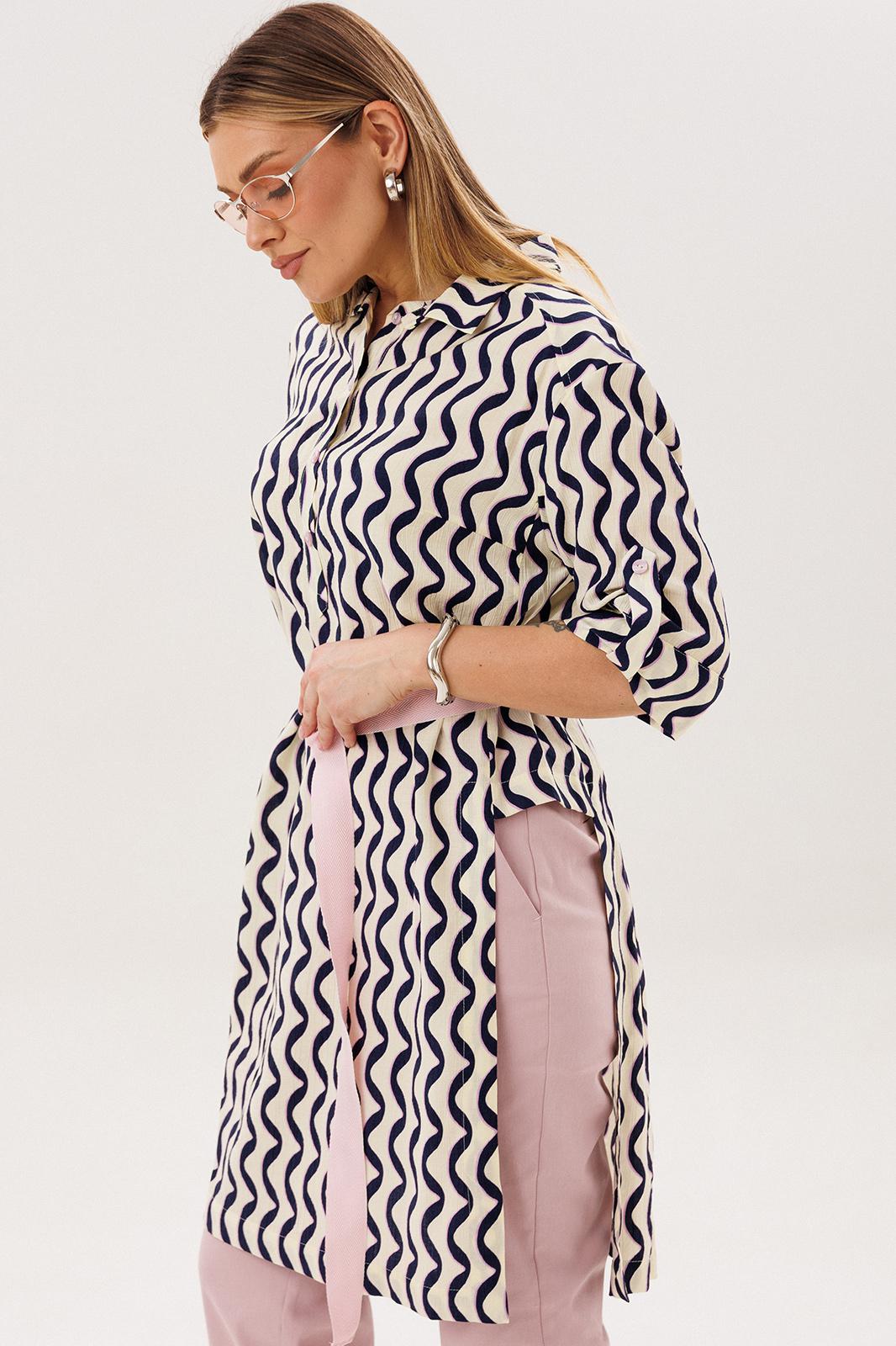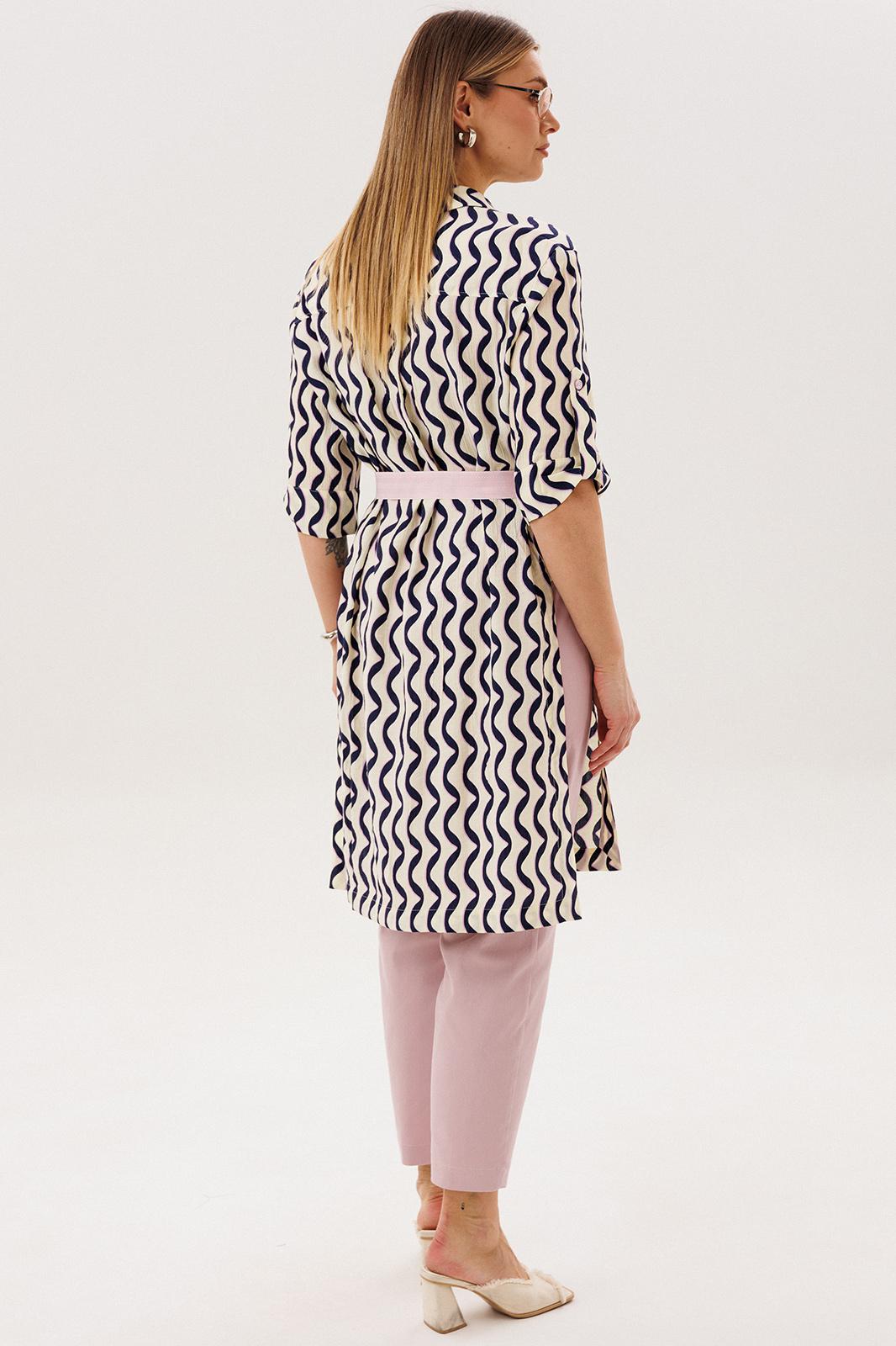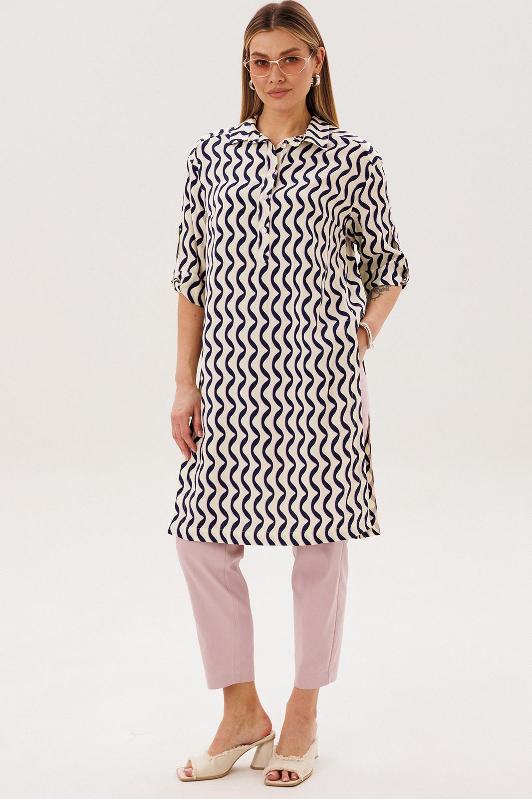 Комплект состоит из удлинённой рубашки-туники и брюк.