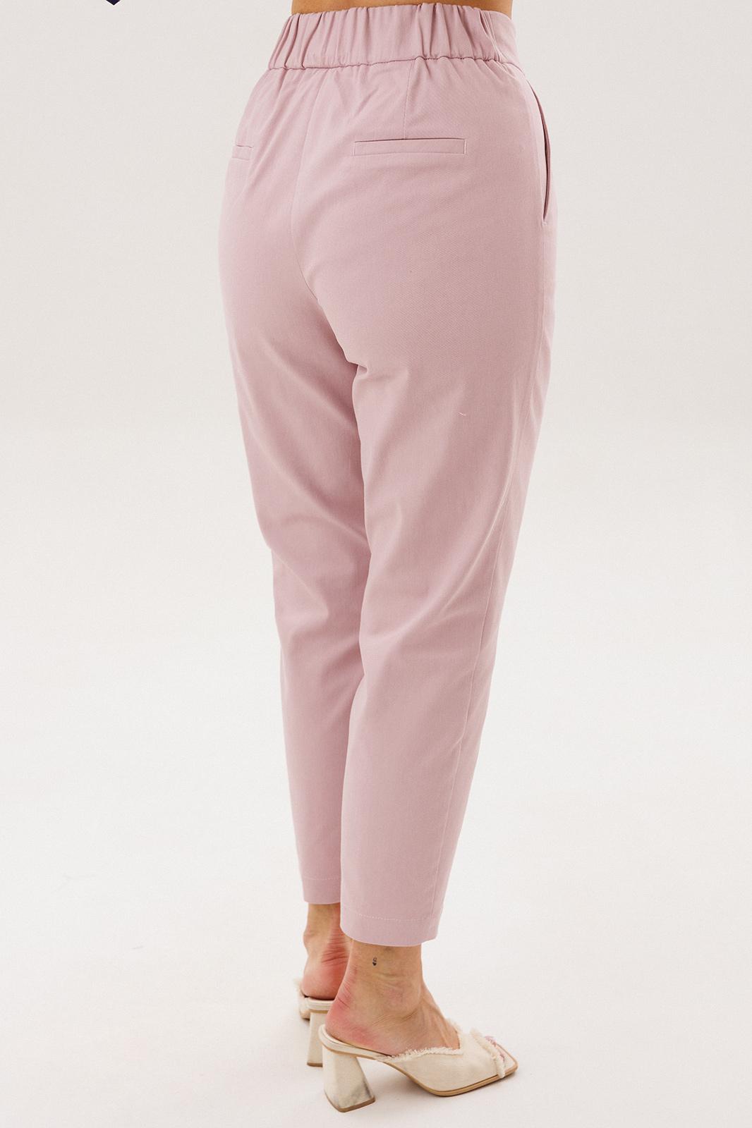 Брюки на широком приточном поясе с эластичной лентой по спинке, зауженные к линии низа. Имеют наклонные боковые карманы и имитацию кармана с листочкой на задней половинке.