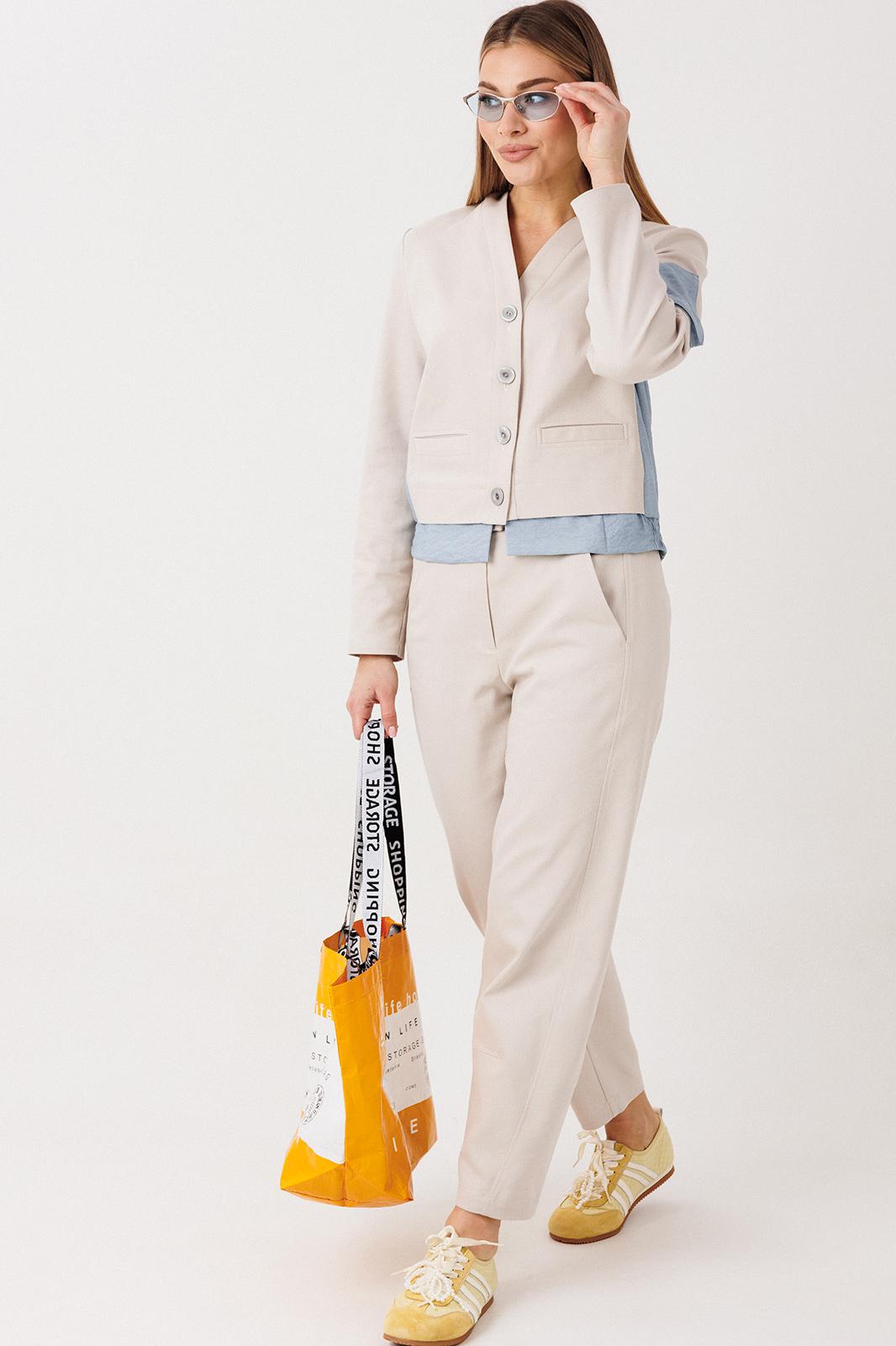 Невероятный брючный комплект в стиле street-casual. Его выделяет полная свобода, удобство и комфорт в тандеме с неповторимостью, ненавязчиво подчеркивающей индивидуальность. Определенную эффектность образу придает использование разнофактурного полотна гармонично сочетающегося цвета.