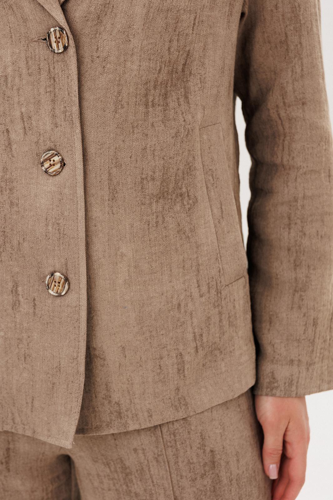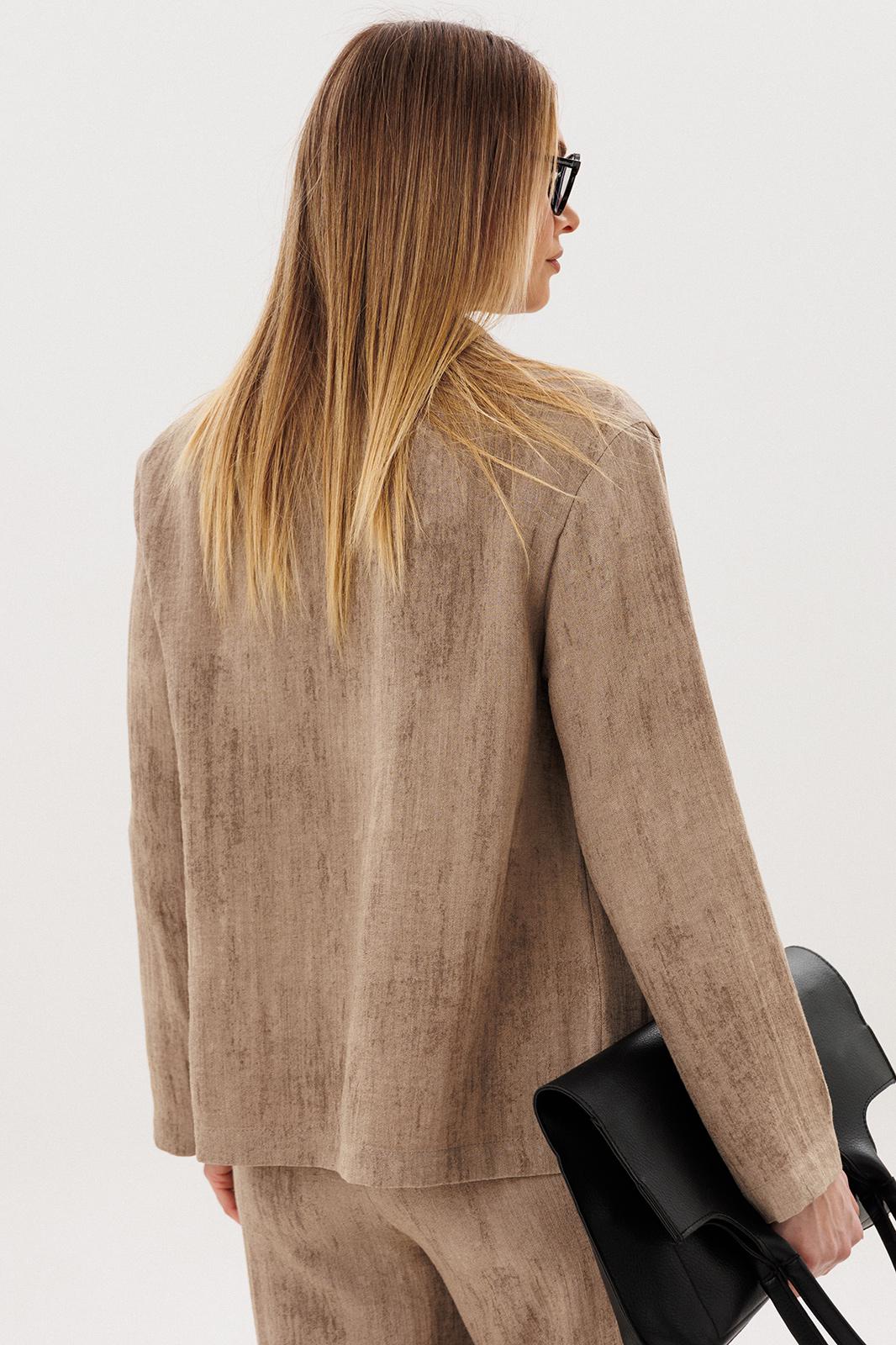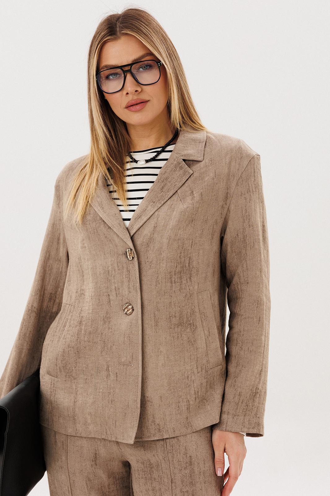 Свободный жакет прямого кроя с классическим лацканом и застёжкой на пуговицы