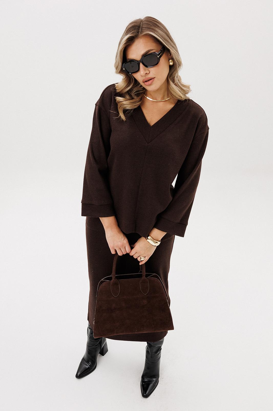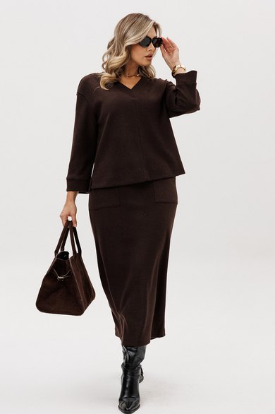 Модный must have осенне-зимнего сезона - трикотажный костюм с длинной юбкой, и эта длина - максимальна. В тандеме со слегка укороченным верхом простота и элегантность выходят на максимальный уровень.
