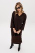 Свободный упрямлённый джемпер с заниженной линией плеча, V-образным вырезом и рукавом длиной 7/8. По горловине и низкам рукавов - отделочные полоски.