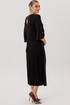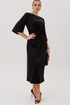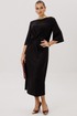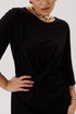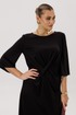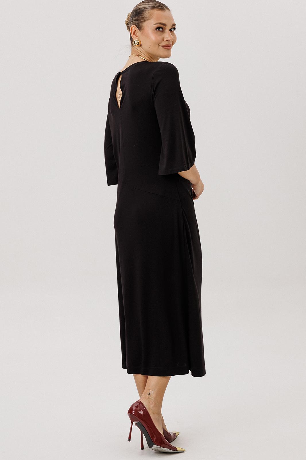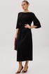 Полуприлегающий силуэт, втачной покрой, эффектный вырез лодочкой, рукав, расширенный внизу, длиной 3/4.