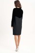 Свободный упрямлённый силуэт, втачной рукав, круглая горловина. Полочка с отрезной кокеткой, ассиметричным рельефом со встречной складкой и разрезом, нагрудной вытачкой. Спинка с центральным швом и отрезной фигурной кокеткой. Рукав зауженный, длинный. Кокетка полочки, спинка и рукава - из мягкого вискозного фактурного трикотажа. Полочка и спинка - из эффектного поливискозного полотна с лёгким вкраплением пайетки.