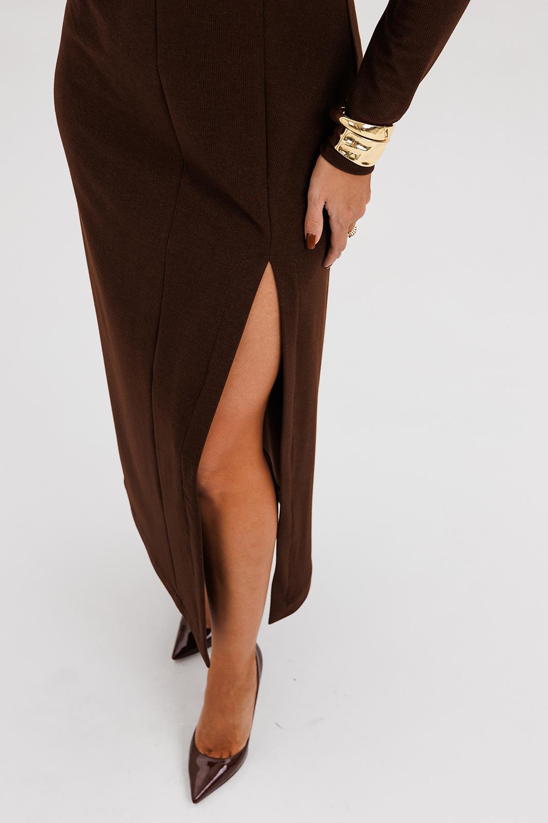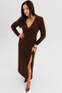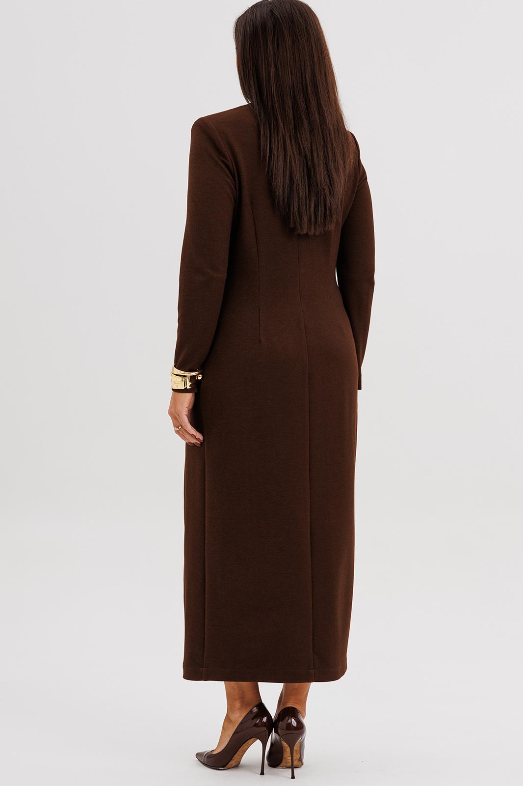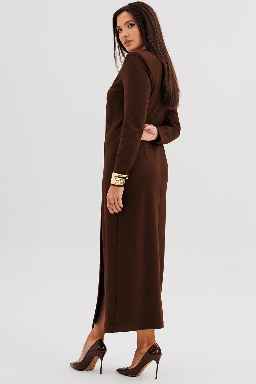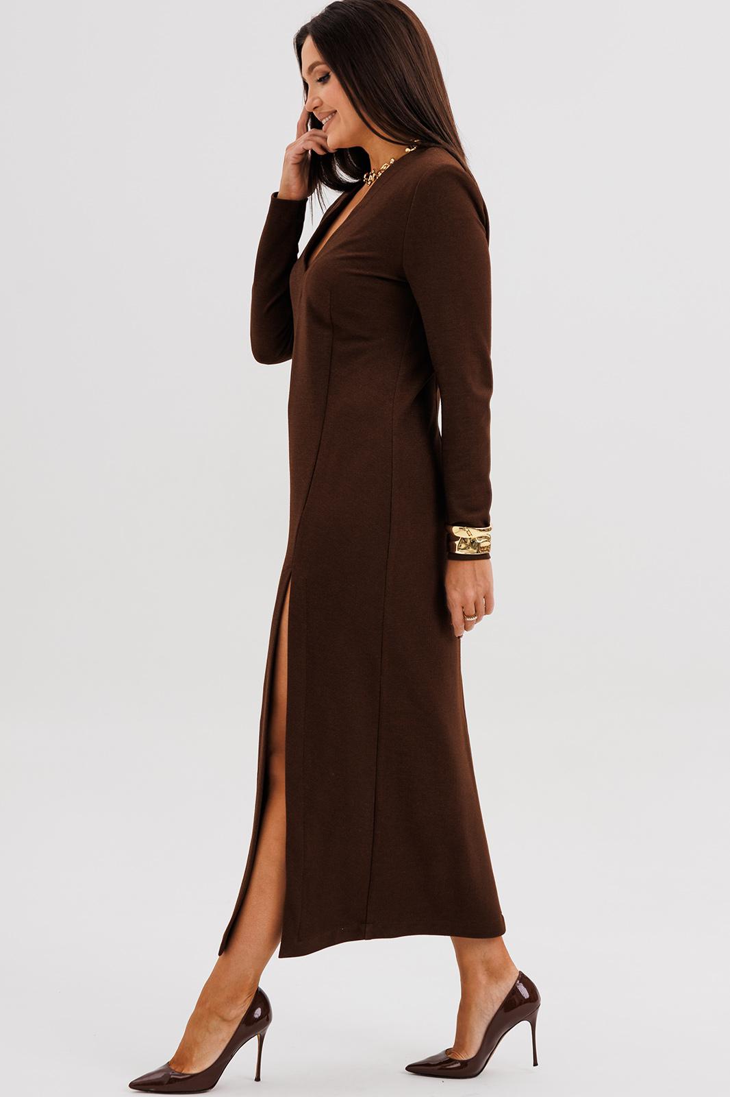 Шикарное платье из мягкого трикотажного полотна с едва заметным вкраплением люрекса — идеальное сочетание комфорта и элегантности. Втачной крой с лёгким прилеганием подчёркивает силуэт, а асимметричный рельеф визуально вытягивает фигуру, добавляя образу динамики. Глубокий V-вырез создаёт женственный акцент, а эффектный разрез спереди придаёт образу уверенность и утончённую привлекательность.