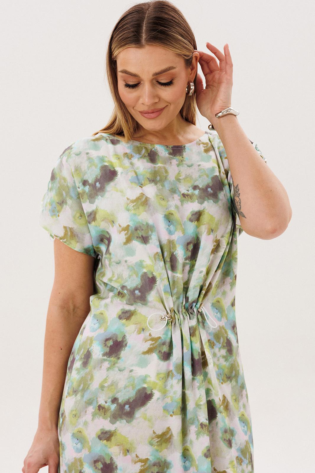 Правильный крой украшает любую фигуру, дарит настроение легкости и свежести. Свободный упрямлённый А-силуэт, цельнокроеный покрой, эффектные подтяжки на эластичный шнур и фиксаторы по плеча, и частично по линии талии на полочке и спинке.