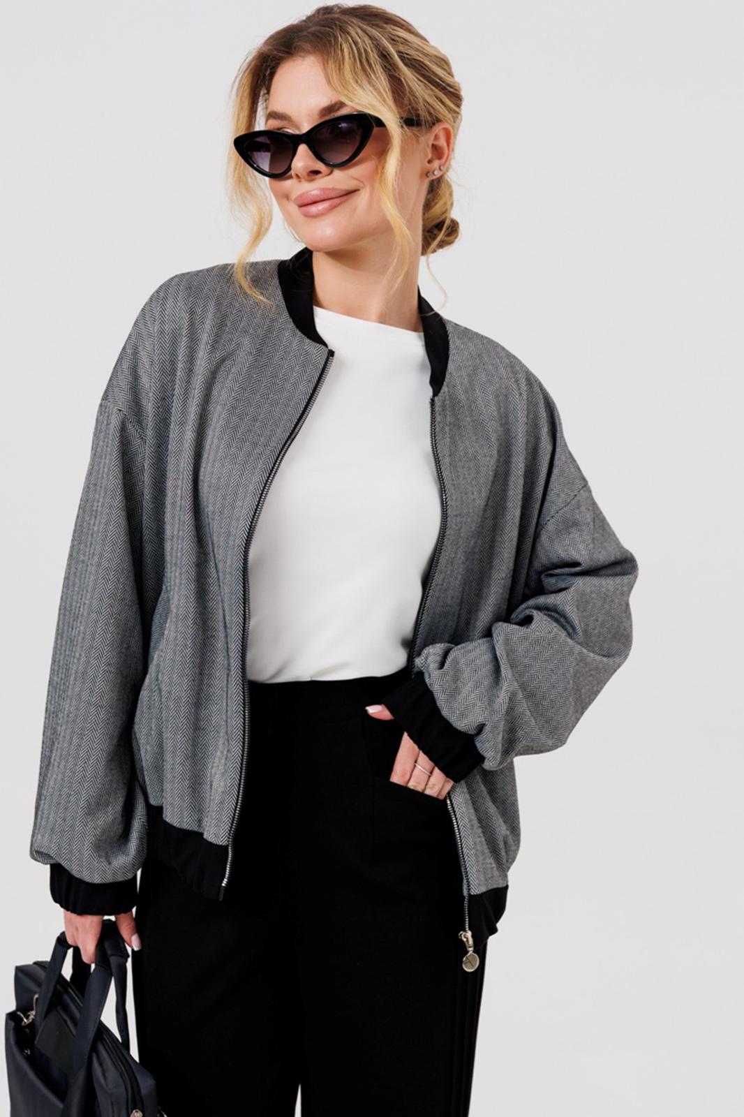 застежке-молнии, с карманами и контрастными довязами по горловине, рукавам и низу.