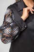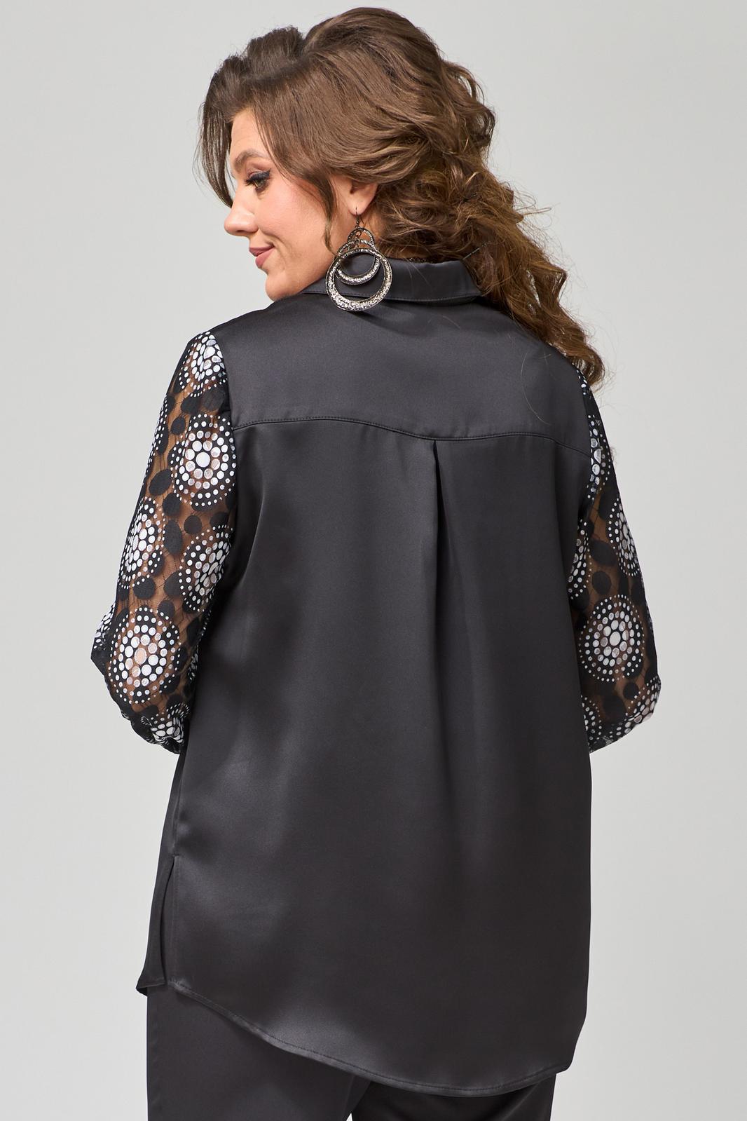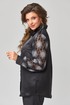 Блузка нарядная Ягла прямого силуэта, на застежку петли - пуговицы. По груди вытачка, по спинке отрезная кокетка и складка бантовая. Воротник отложной на стойке, рубашечного типа. По низу рукава манжет на застежку, низ рукава обработан манжетой на застежку на две пуговицы. По бокам разрезы, низ блузки обработан швом в подгибку. Внимание! Украшение в комплект не входит.