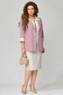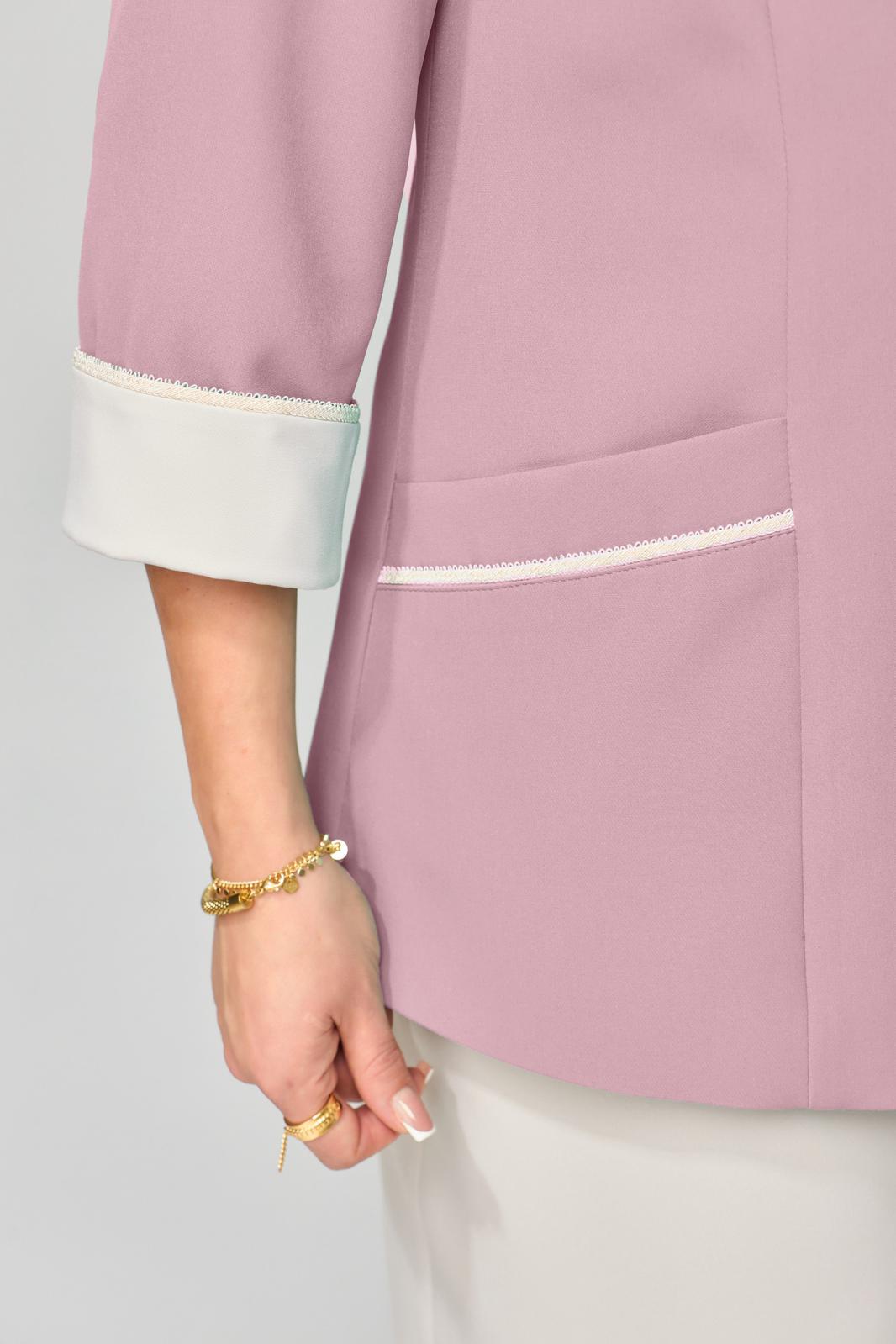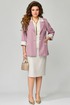 Классический нарядный юбочный костюм Ведана прямого силуэта, жакет и юбка на подкладке. Смотрится очень элегантно и торжественно, подойдет для выходов и праздников. Жакет выполнен из текстильной ткани с элементами декоративной тесьмы. В жакете прорезной карман без клапана, застежка однобортная с лацканами, рукав 7/8 с отложной манжетой. По спинке изделия идет средний шов. Юбка зауженная к низу, по спинке юбки - шлица, на поясе по бокам резинка, застежка на потайную молнию и пуговицу. Блузка на трикотажной подкладке без рукав, выполнена из эластичного кружева, с овальным вырезом по горловине. В блузке проймы и горловина обтачены подкладкой, низ обработан распошивалкой.