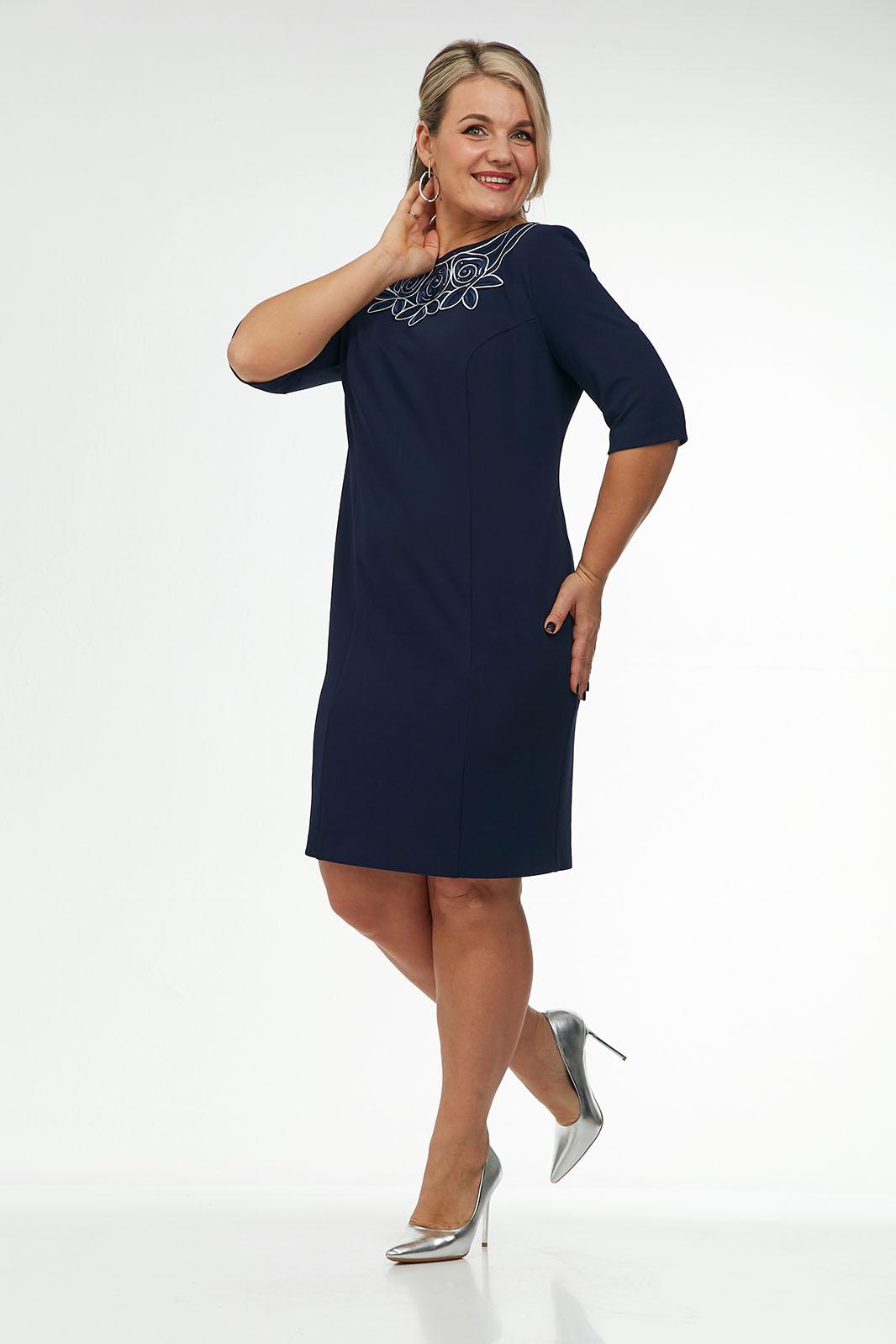 Платье осень- зима, полуприлегающего силуэта. Из приятного и уютного качественного трикотажа. По переду имеются рельефы и декоративная отделка у горловины. По спинке- вытачки и молния, а также небольшая шлица Рукав втачной 3/4. Длина платья по спинке 97см (+/- 1 см).
