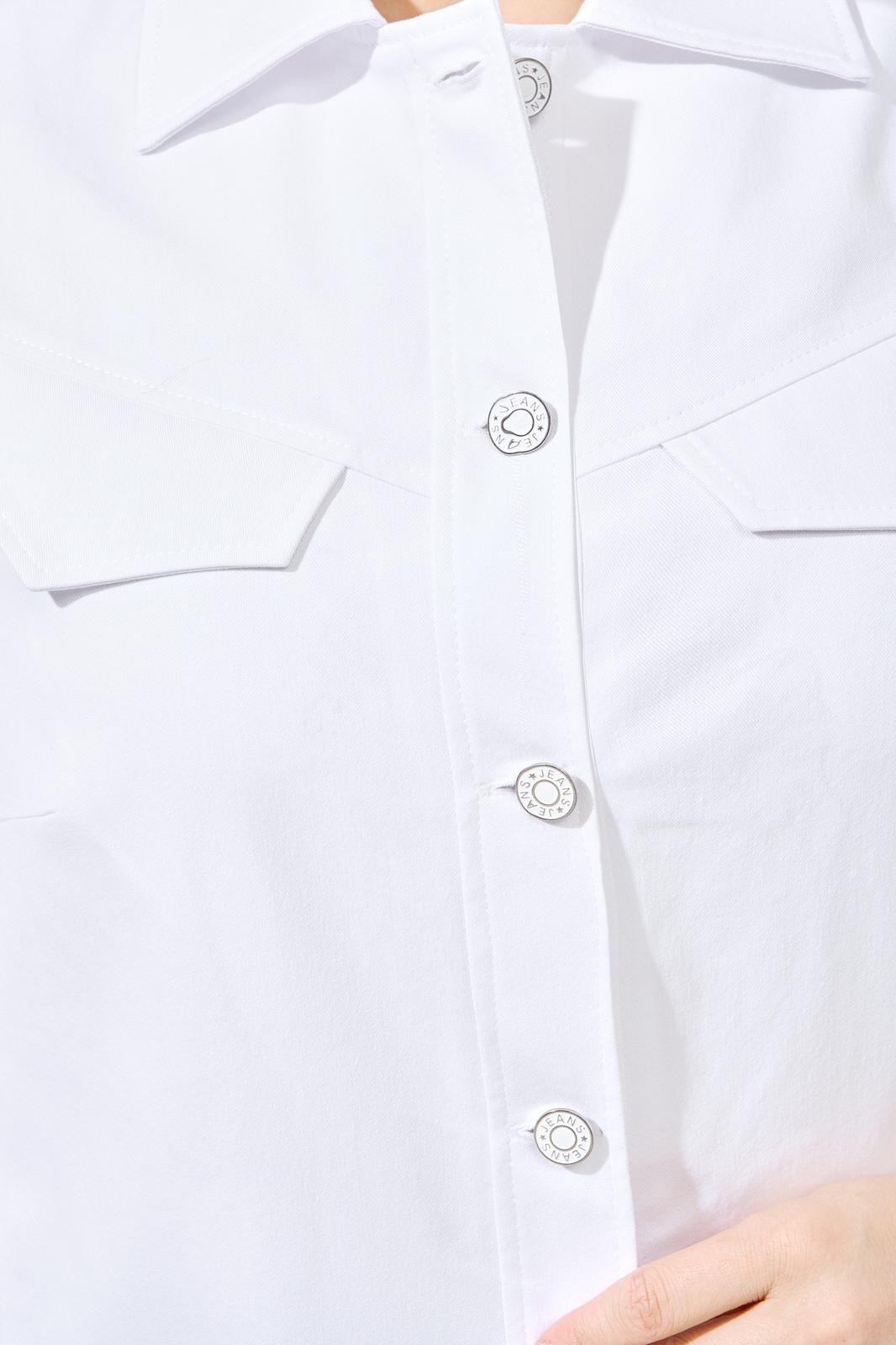 Стильная джинсовая куртка идеально сочетает классический дизайн и современную элегантность. Куртка свободного силуэта выполнена из хлопкового джинса с клапанами-обманками по верху и функциональными карманами в боковых швах, рукава со спущенной линией плеча и манжетами, застежка по переду на джинсовые пуговицы-болты.