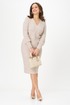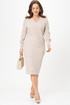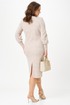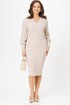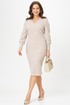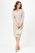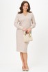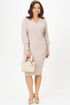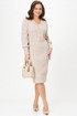 Платье женское, трикотажное полуприлегающего силуэта. v-образным вырезом по переду.Со средним швом заканчивающиеся разрезом.Рукава прямые собирающиеся с низу на манжет. Платье длиной ниже линии колена. На манжетах нашиты 4 декоративные пуговицы.