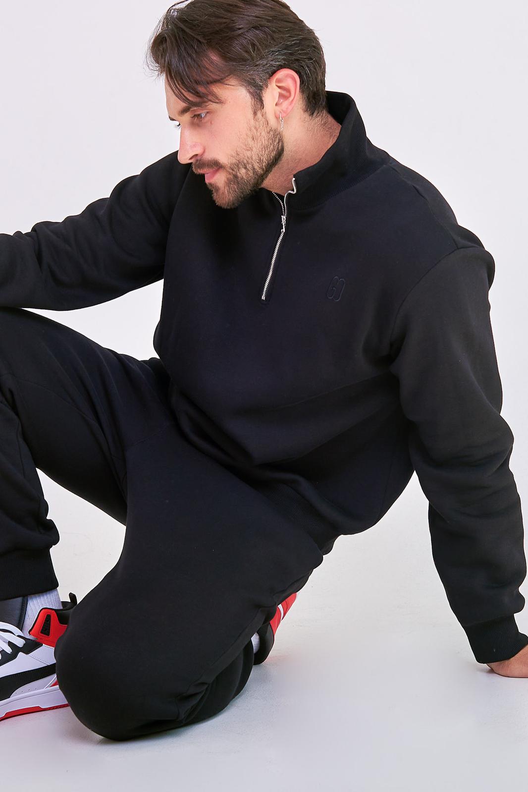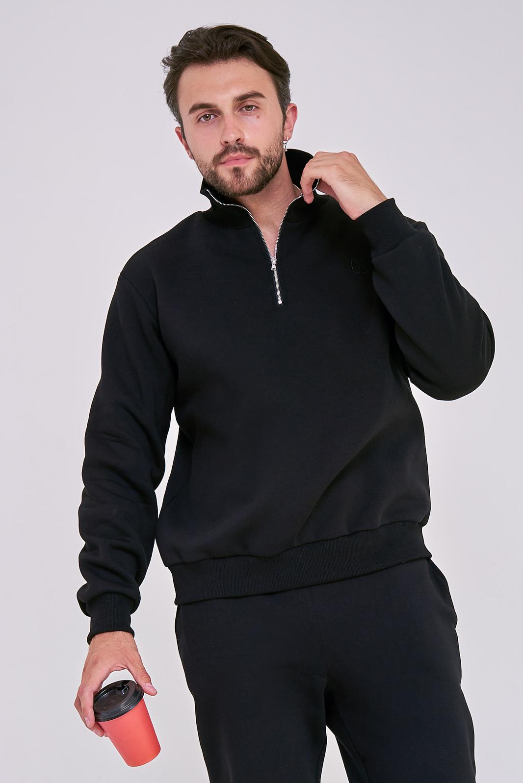 Спортивный джемпер в стиле athleasure. Отлично подойдёт для дома, прогулок, путешествий и отдыха. Пошит из теплой, комфортной ткани. Джемпер с короткой застежкой — молнией черного контрастного цвета по центру переда. Воротник — стойка. Джемпер имеет прямой силуэт, с притачной манжетой по низу изделия. Вышивка – логотип на левой части переда в цвет ткани. Рукава втачные одношовные длинные с притачной манжетой по низу.