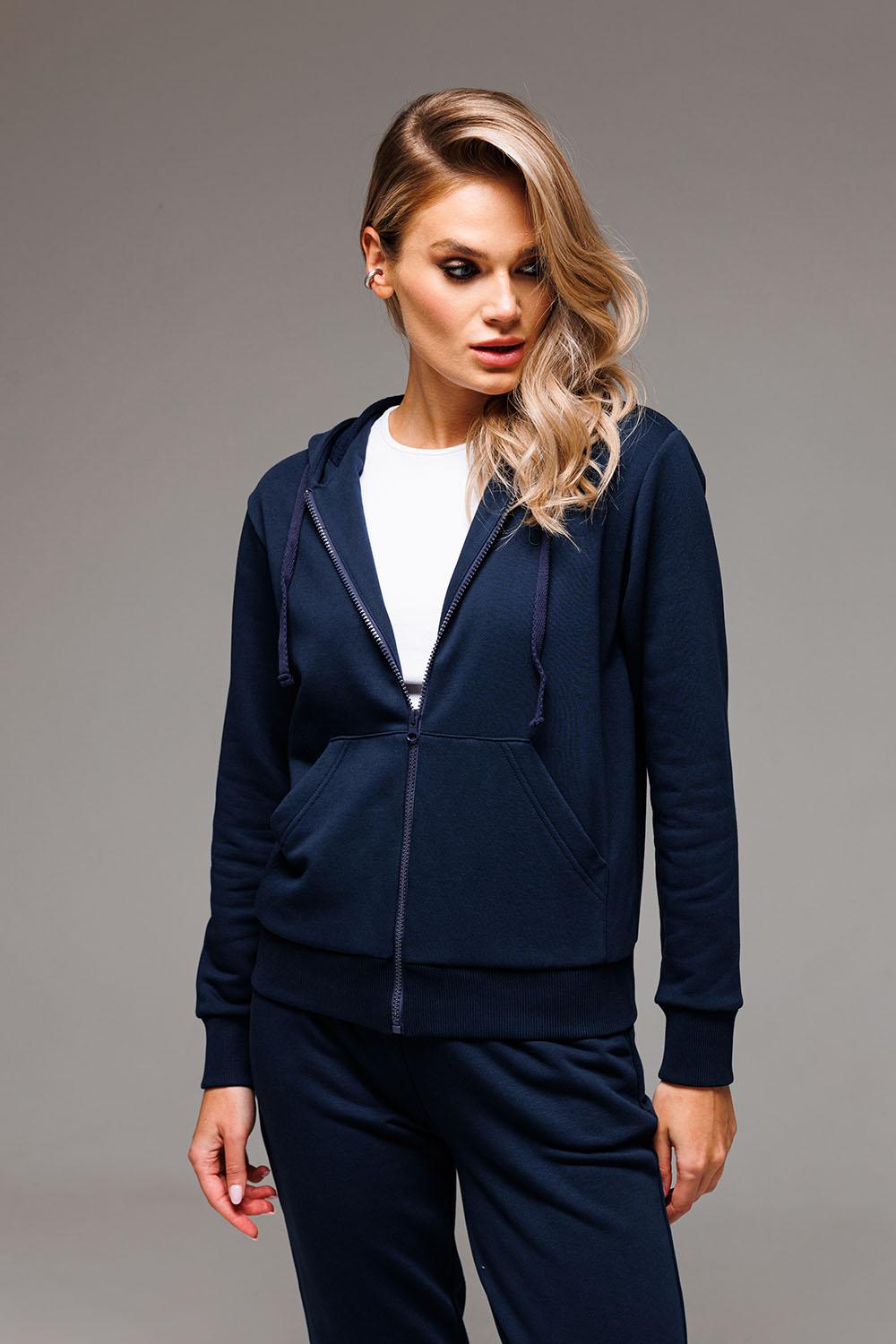 Классический женский спортивный костюм состоит из худи на застёжке-молнии и брюк на манжетах. Всесезонная ткань сделает его любимым в Вашем гардеробе как для дома, так и улицы.