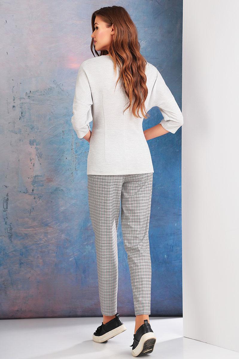 Комфортный джемпер с круглым вырезом горловины. Застежка на навесную петлю и пуговицу по среднему шву спинки.