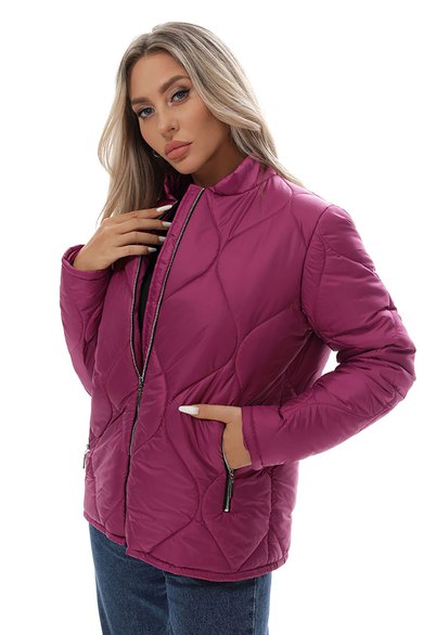 Куртка утепленная, с центральной застежкой на молнию, втачным воротником- стойкой, на полочках расположены прорезные карманы с застежкой- молнией.